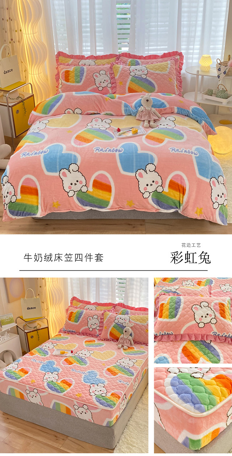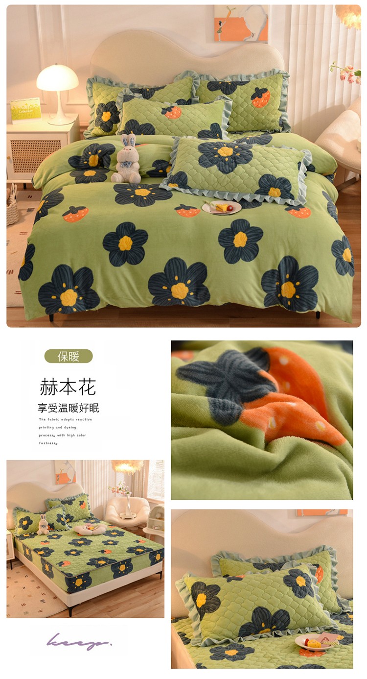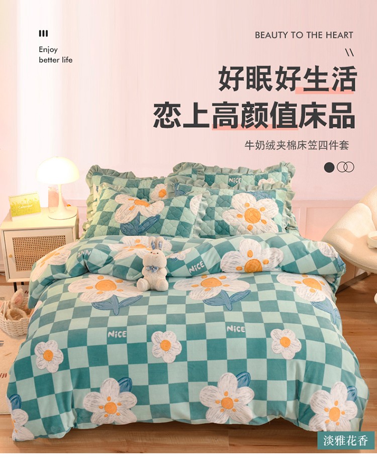 总2025美达新款牛奶绒印花床笠款四件套(床笠高度30cm)