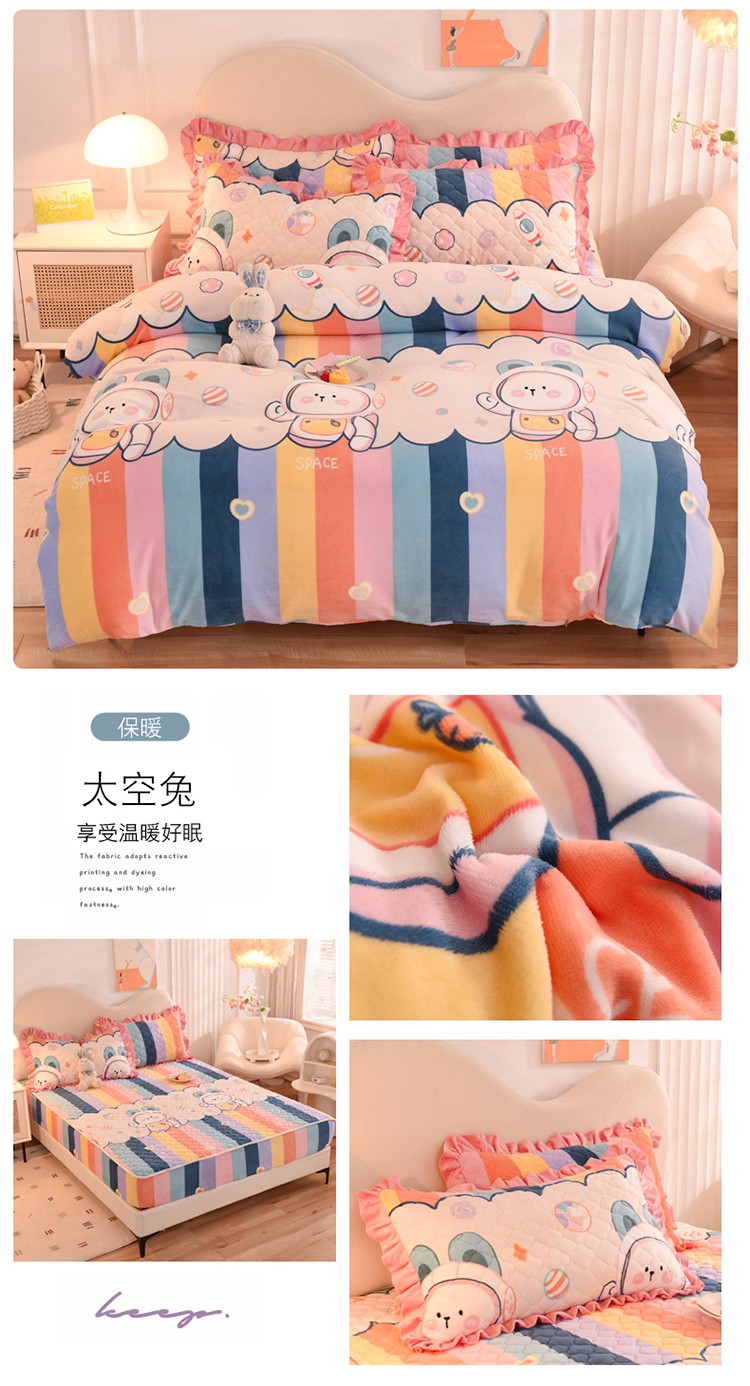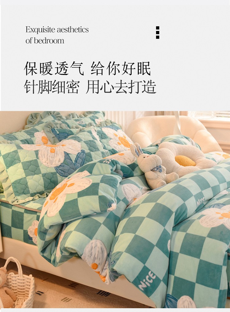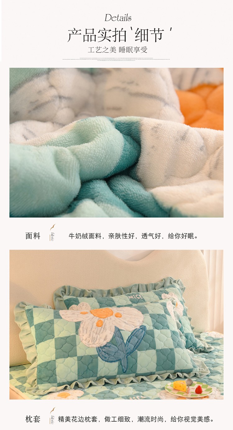 (总)美达家纺 2025新款高克重牛奶绒花边款夹棉床盖三件套,巴拉巴拉,格子萌熊,恐龙星球,梦蝶,时来运转,甜蜜奶吧,微笑熊,针织熊