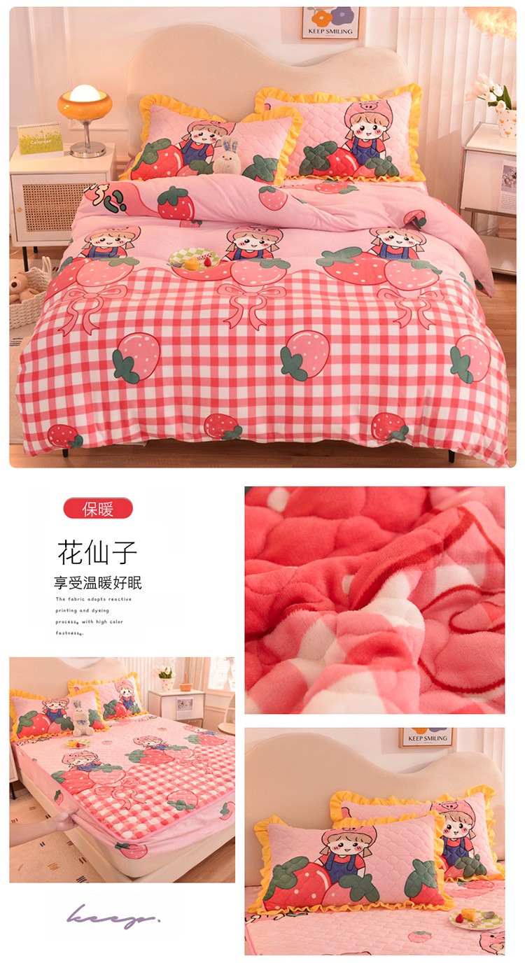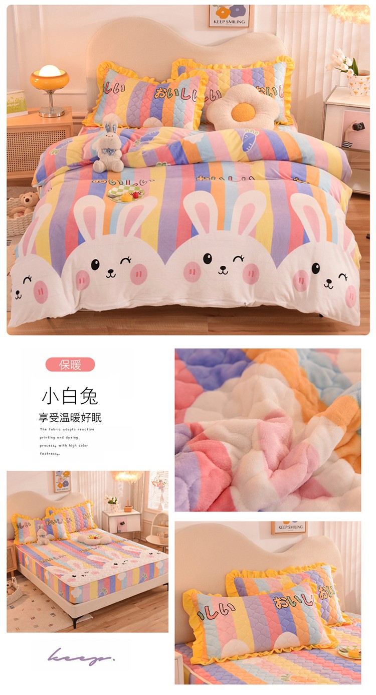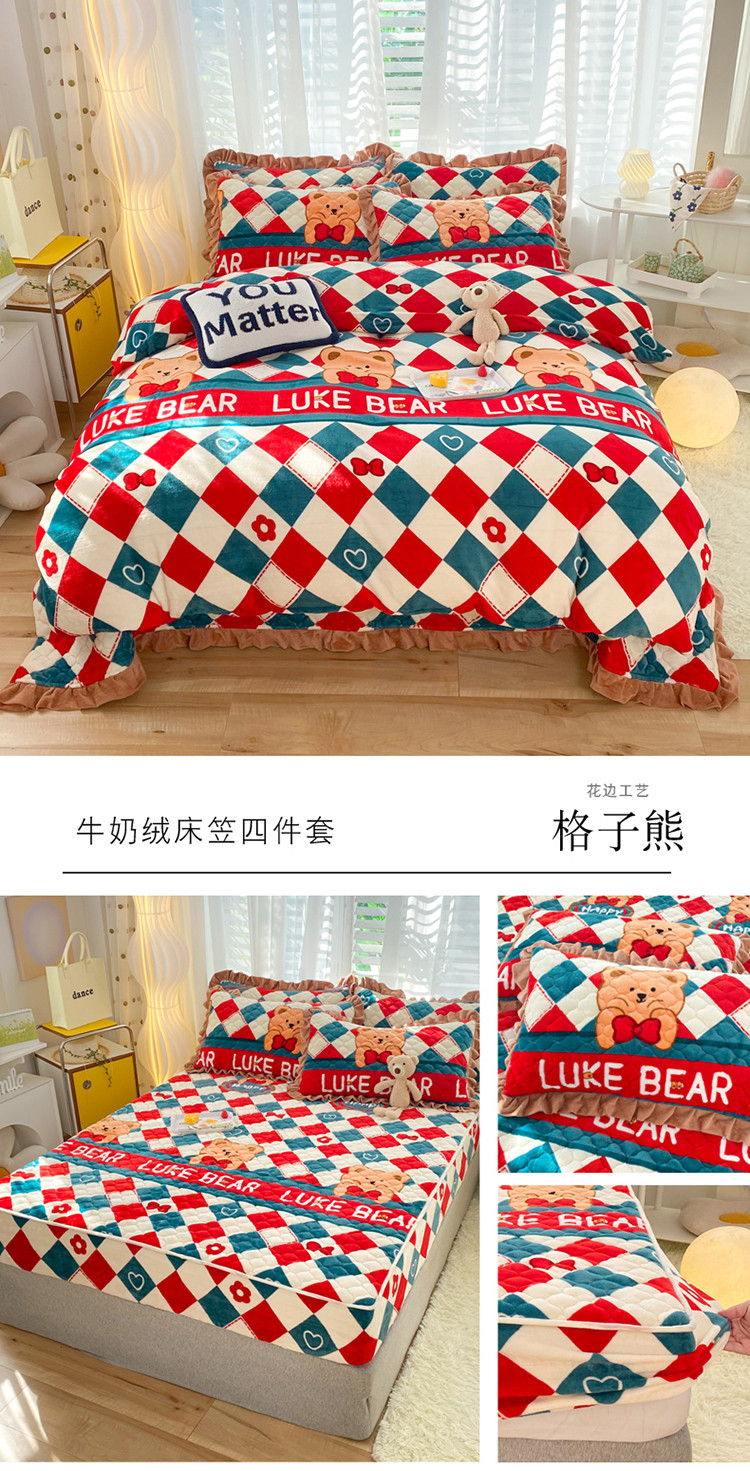 (总)美达家纺 2025新款卡通牛奶绒印花床盖四件套,巴拉巴拉,格子萌熊,恐龙星球,梦蝶,时来运转,甜蜜奶吧,微笑熊,针织熊