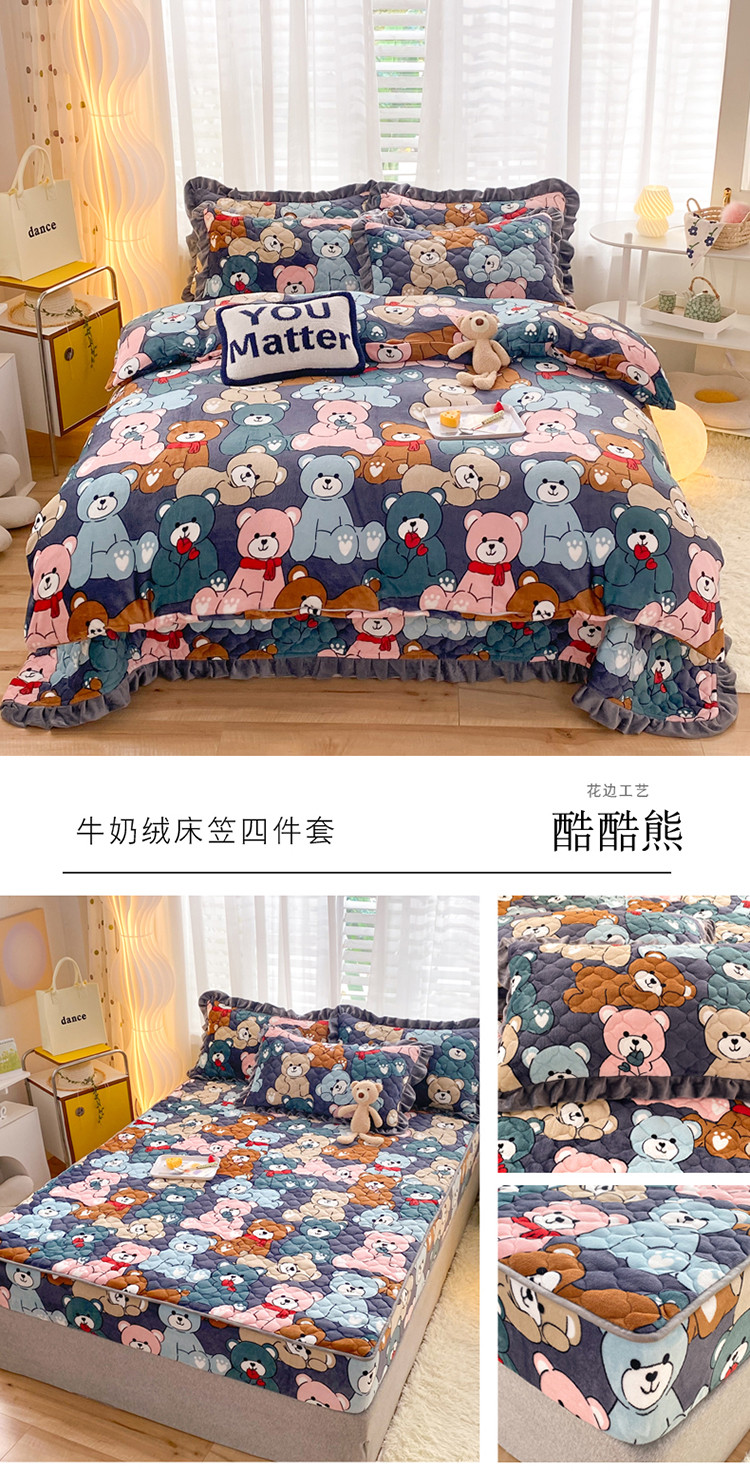 商品名称:总2025美达新款牛奶绒印花床笠款四件套(床笠高度30cm)