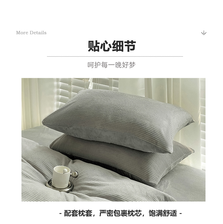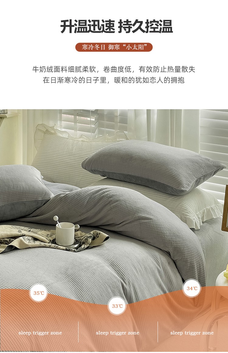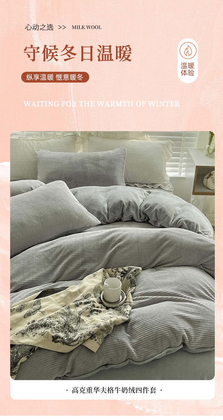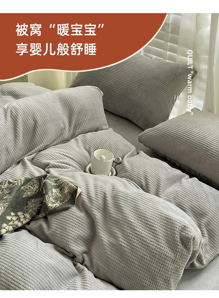 捌月 新款华夫格牛奶绒四件套 华夫格-绅士灰有买家秀提供