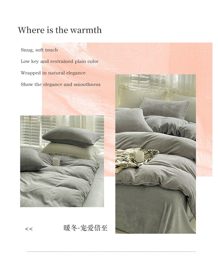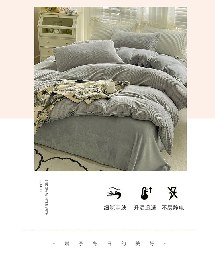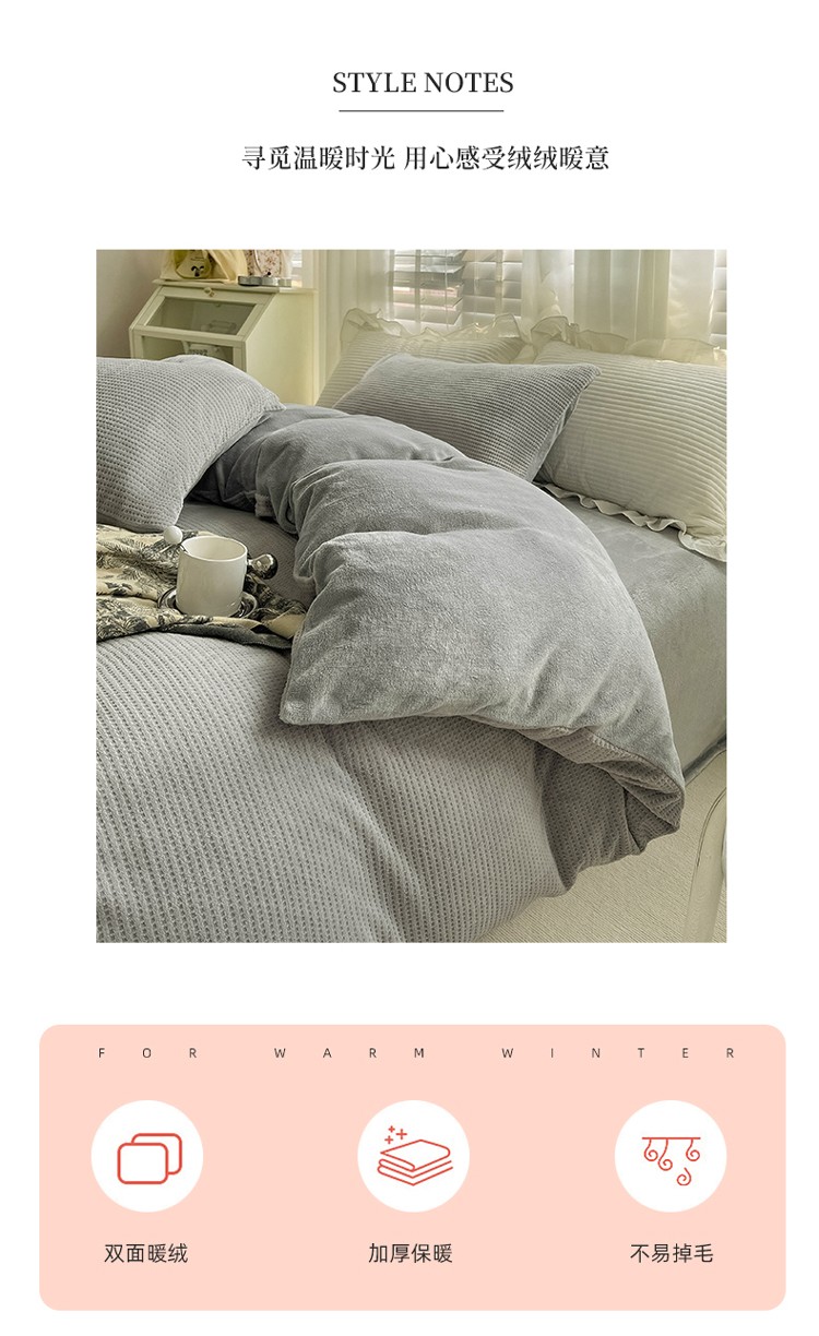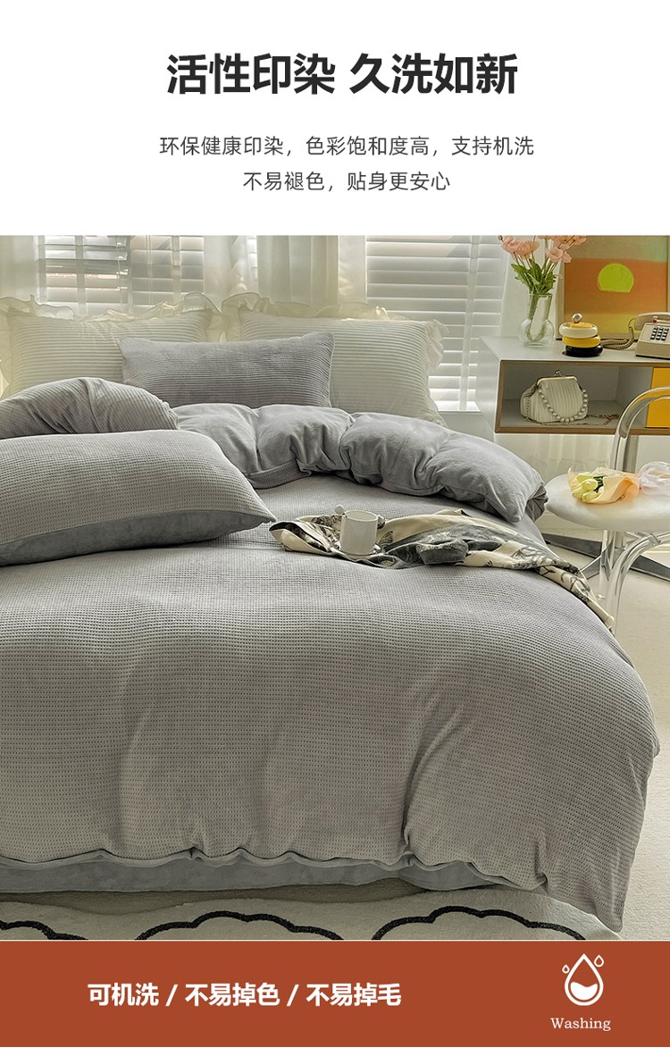 商品名称:捌月 新款华夫格牛奶绒四件套 华夫格-绅士灰有买家秀提供