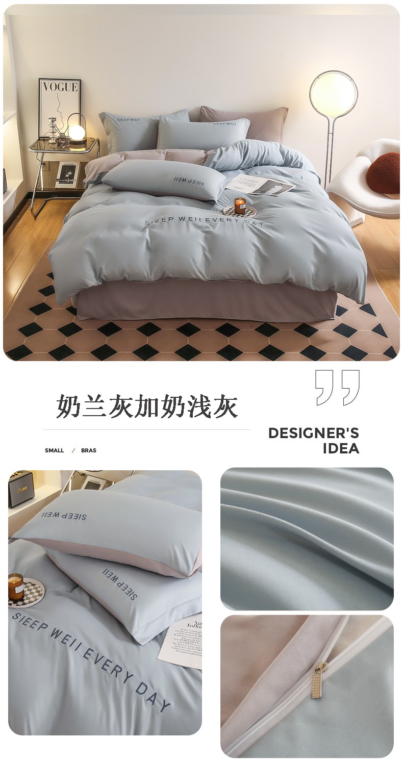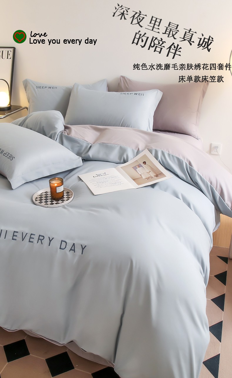 当前位置: 91家纺网 > 商品网购 > 床品套件 > 四件套 > 普通磨毛四件套 > 啊雅家居 新款纯色水洗磨毛亲肤绣花床单款床笠款四套件 奶兰灰加奶浅灰