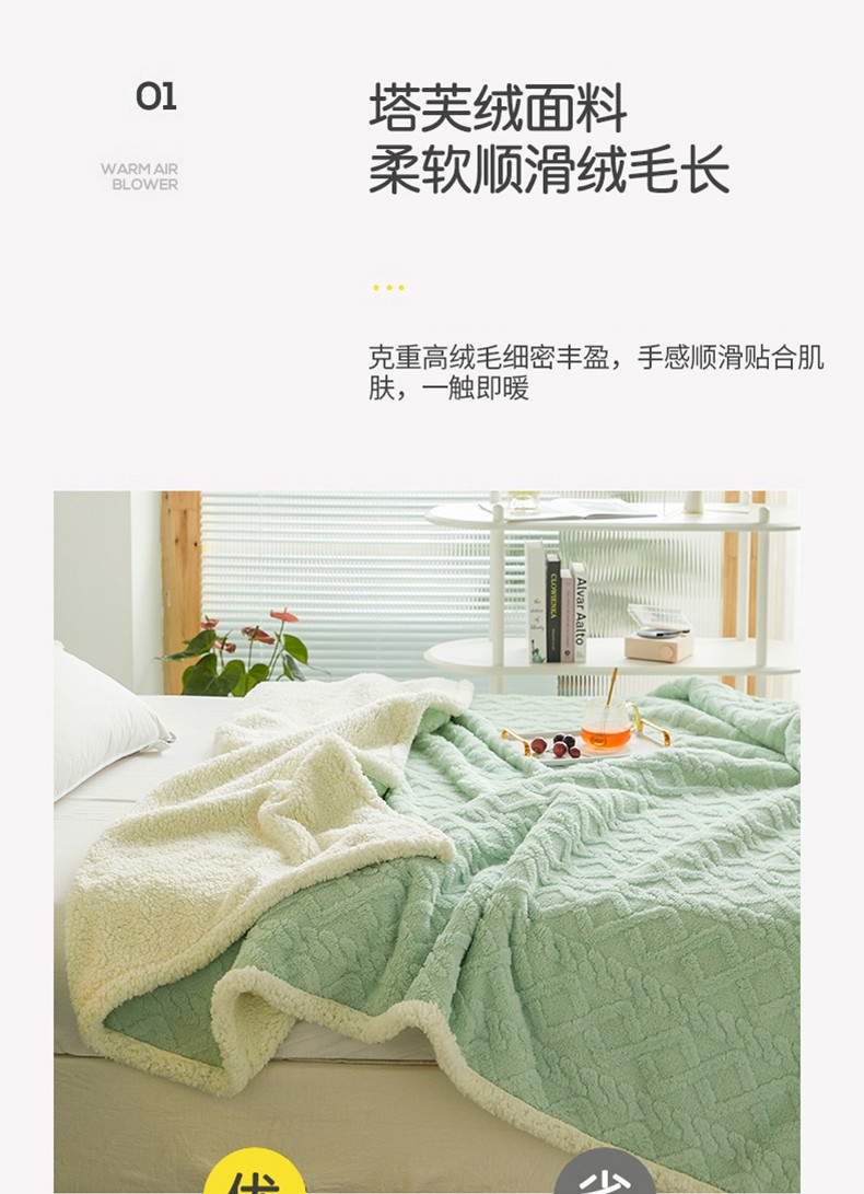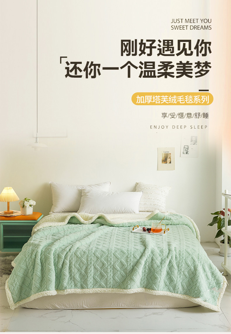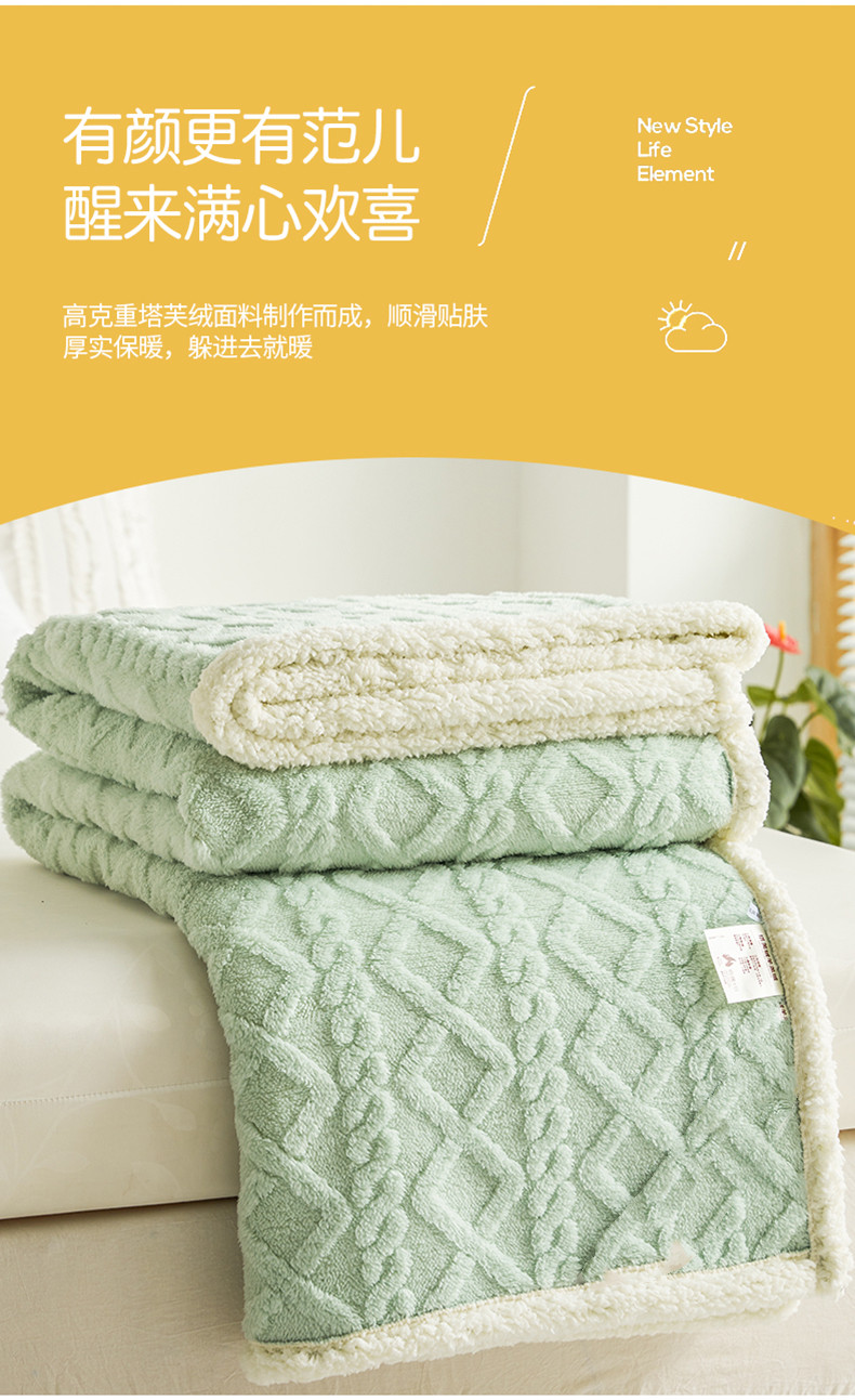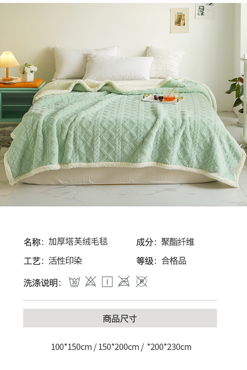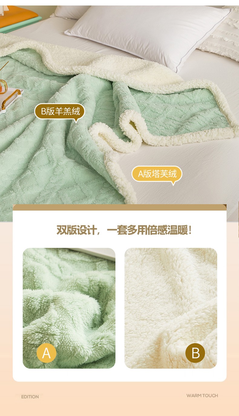 商品名称:启优—2022新款AB版双层加厚提花塔芙绒羊羔绒毛毯