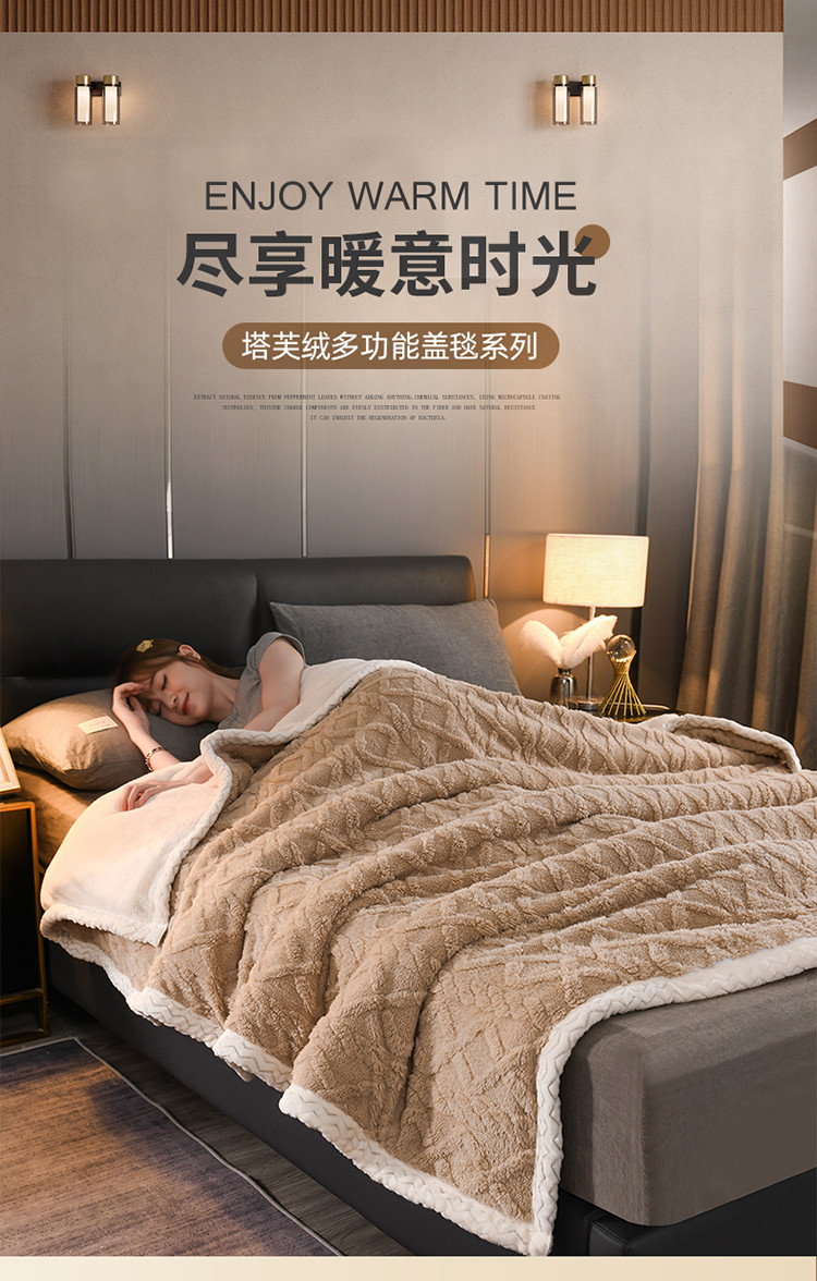 (总)迷仙巢 2022新款塔夫绒多功能盖毯,卡其色,米白色,抹茶绿,柠檬黄,深空灰,香芋紫,樱花粉