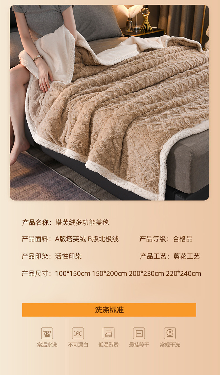 商品名称:迷仙巢 2022新款塔夫绒多功能盖毯 卡其色