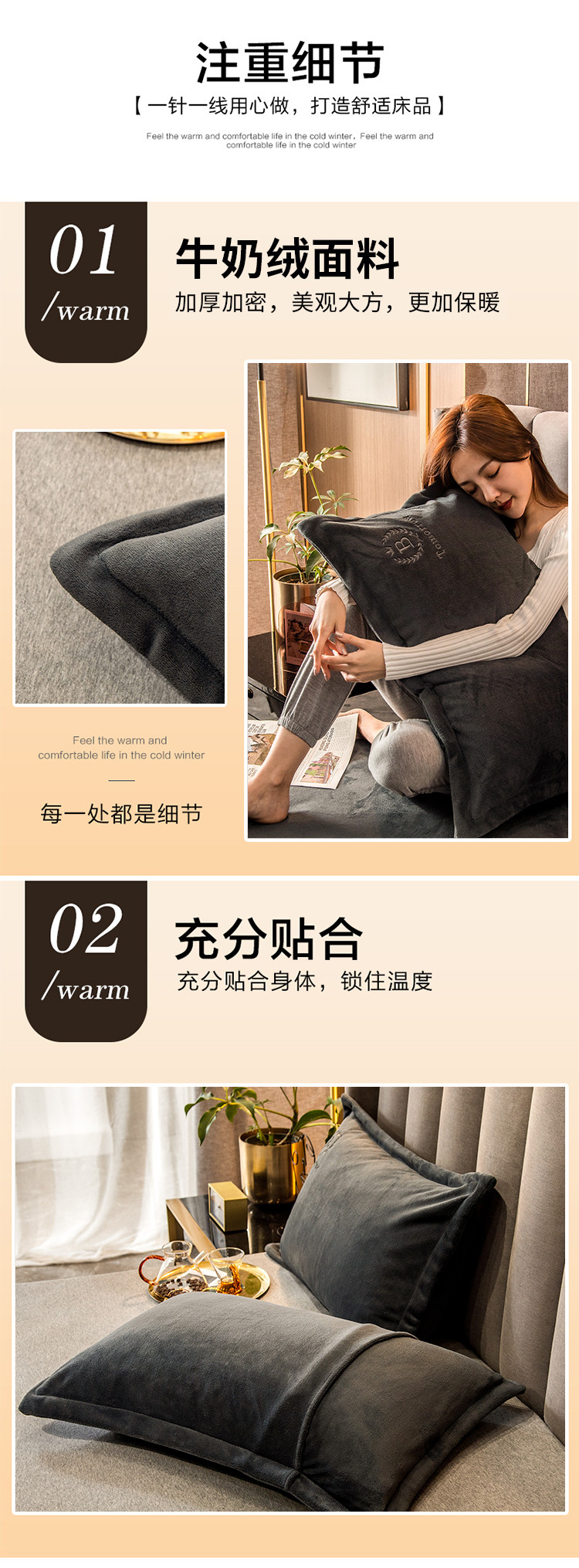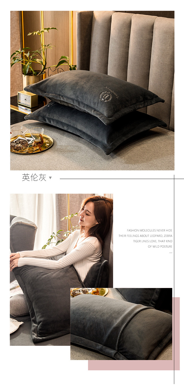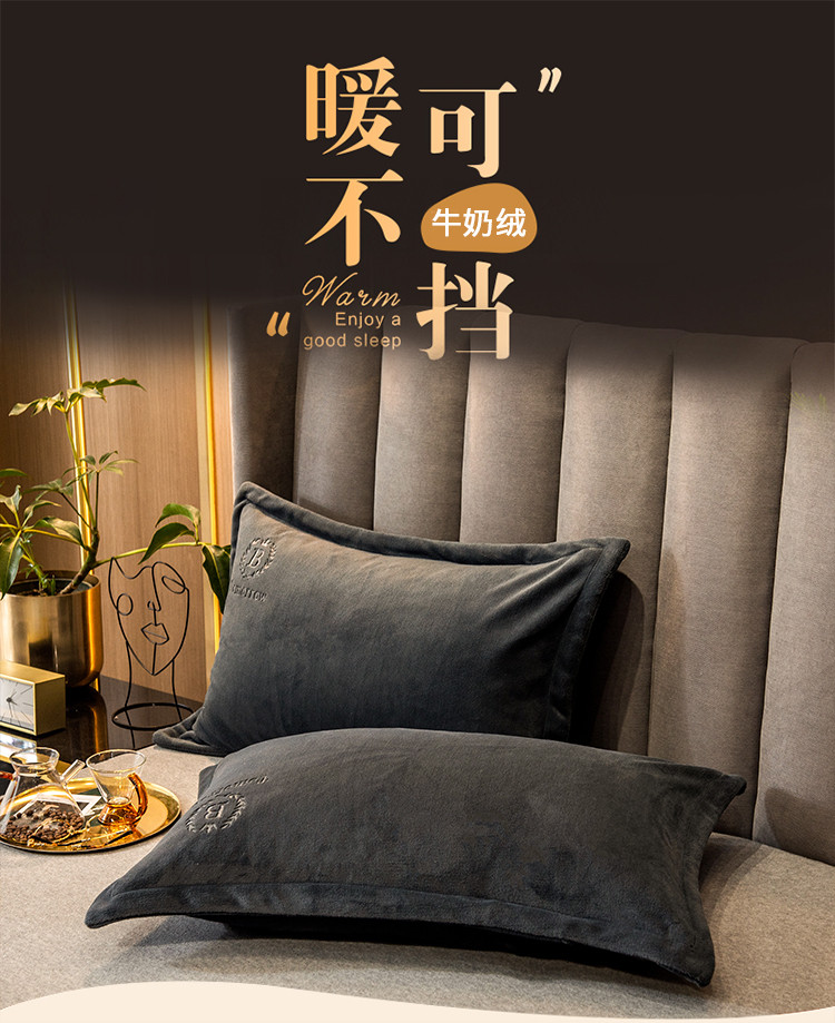 • 91家纺网 家纺一手货源 找家纺 丽美人 2022新款加厚保暖纯色简约牛奶绒系列单品枕套 英伦灰一对