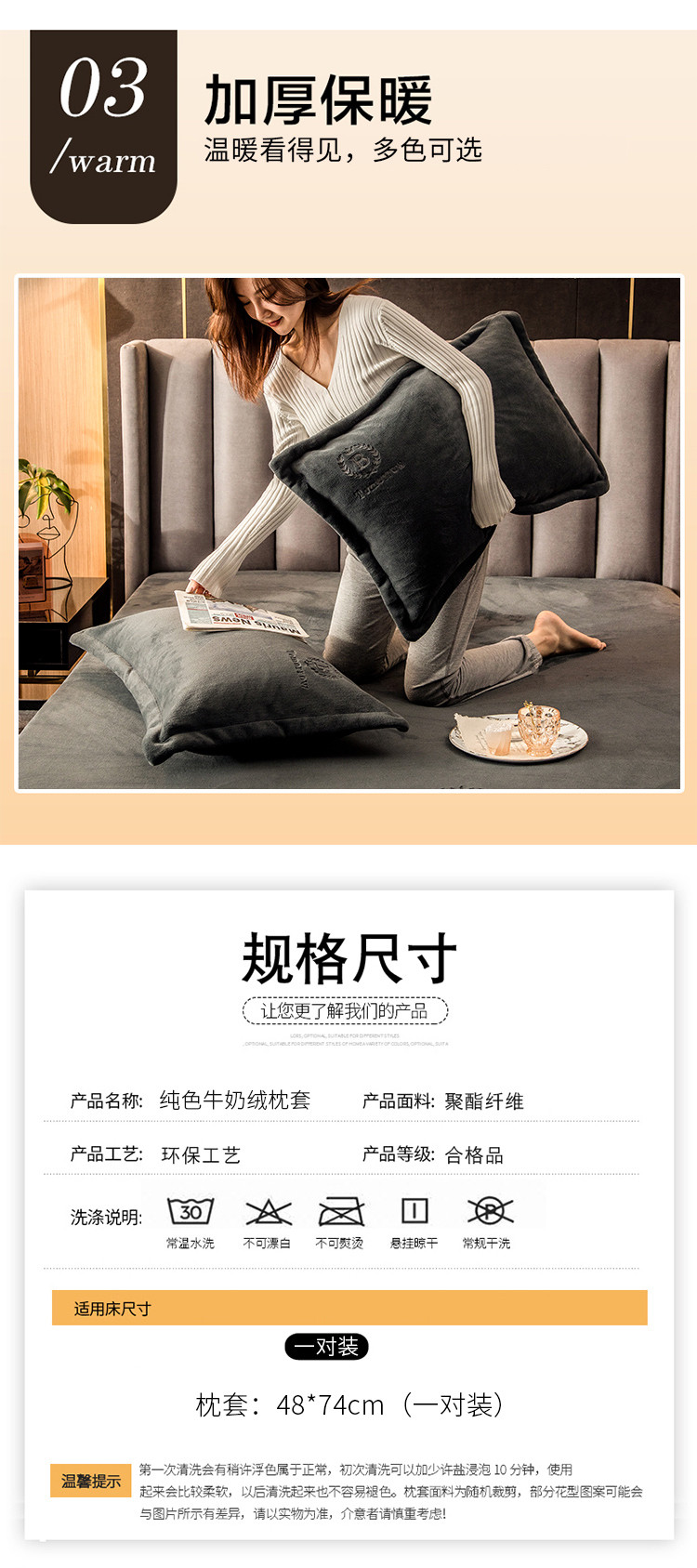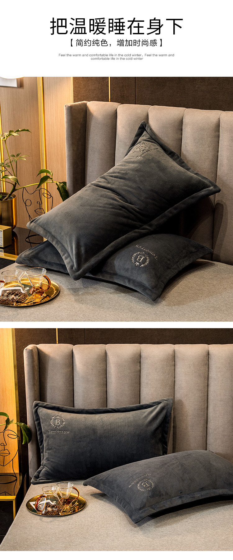 丽美人 2022新款加厚保暖纯色简约牛奶绒系列单品枕套 英伦灰一对
