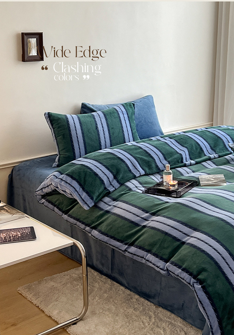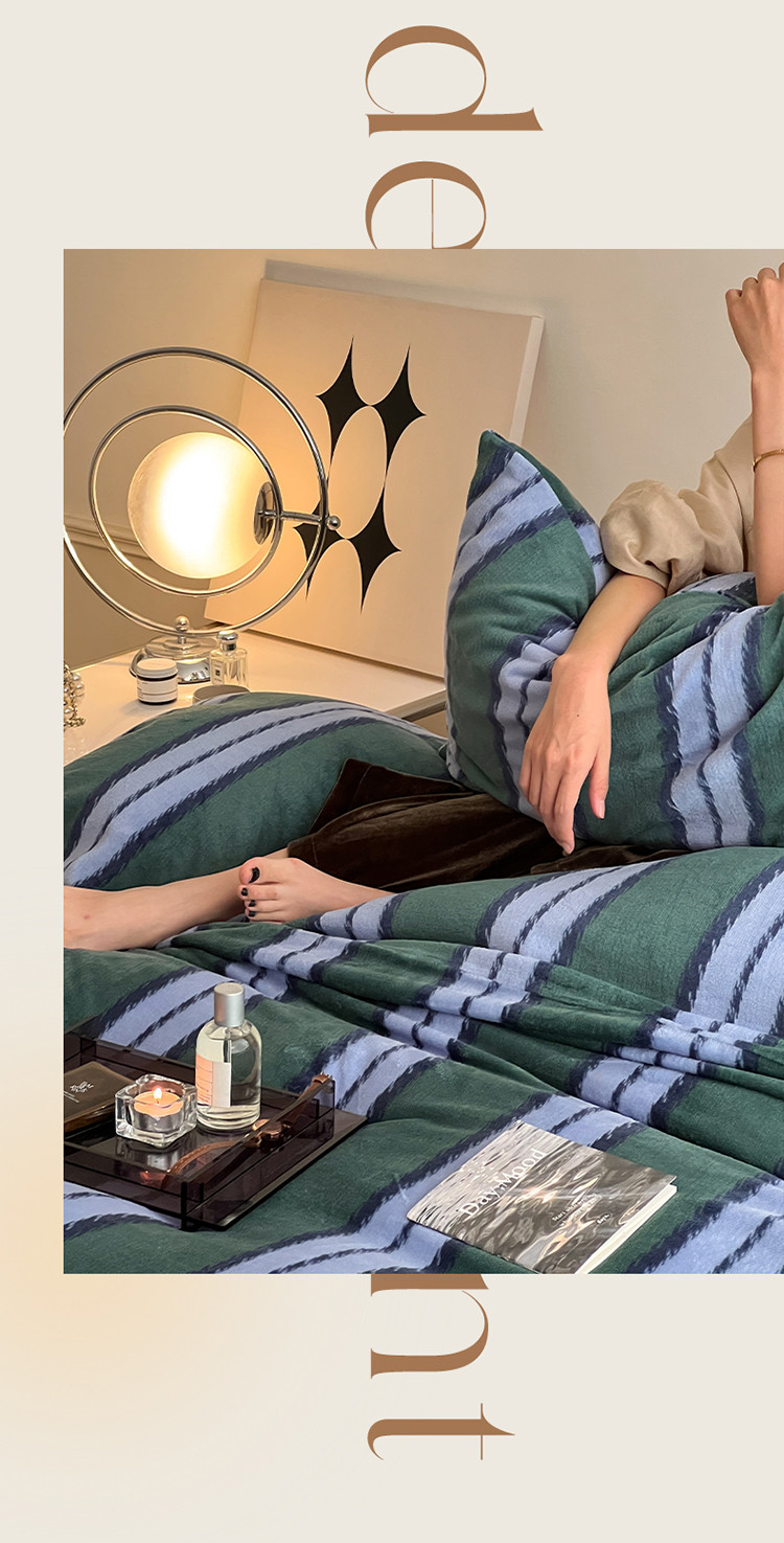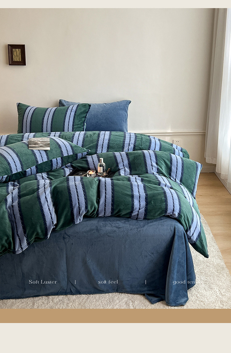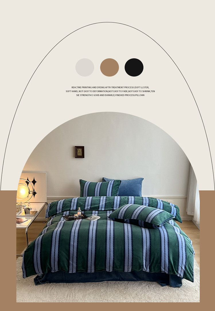 当前位置: 91家纺网 > 商品网购 > 床品套件 > 四件套 > 牛奶绒四件套 > 圆岛家纺 2022新款230克高克重牛奶绒保暖四件套 蓝松绿条