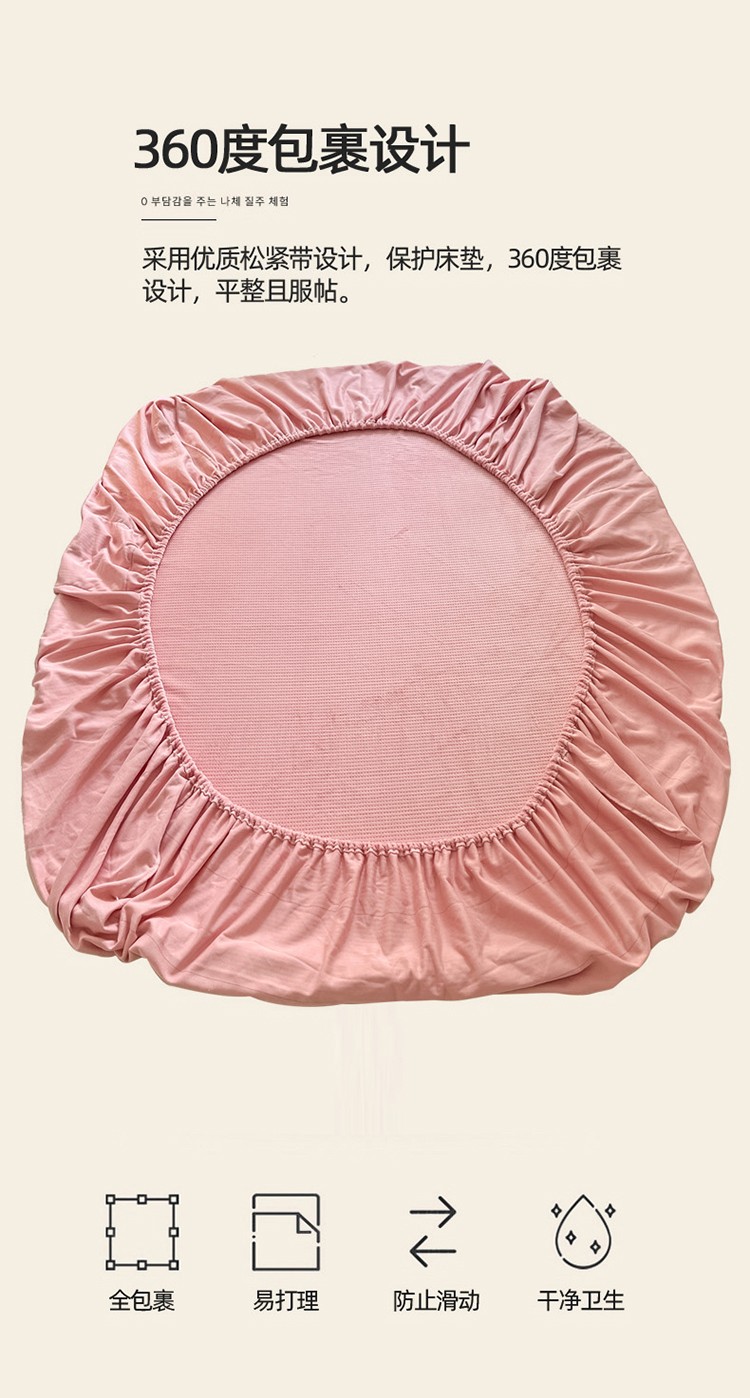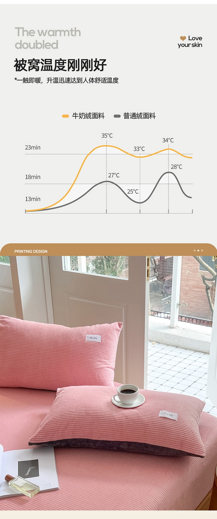 山舍 2022新款高克重华夫格牛奶绒床笠和床笠三件套 粉色