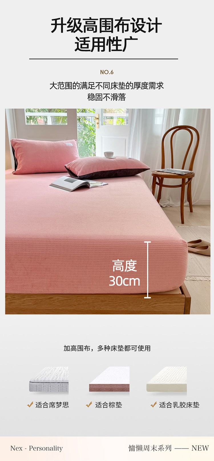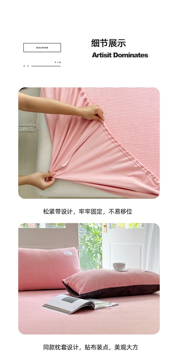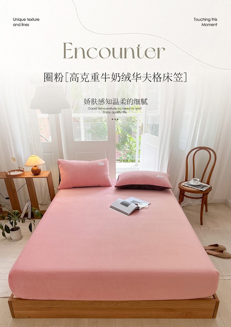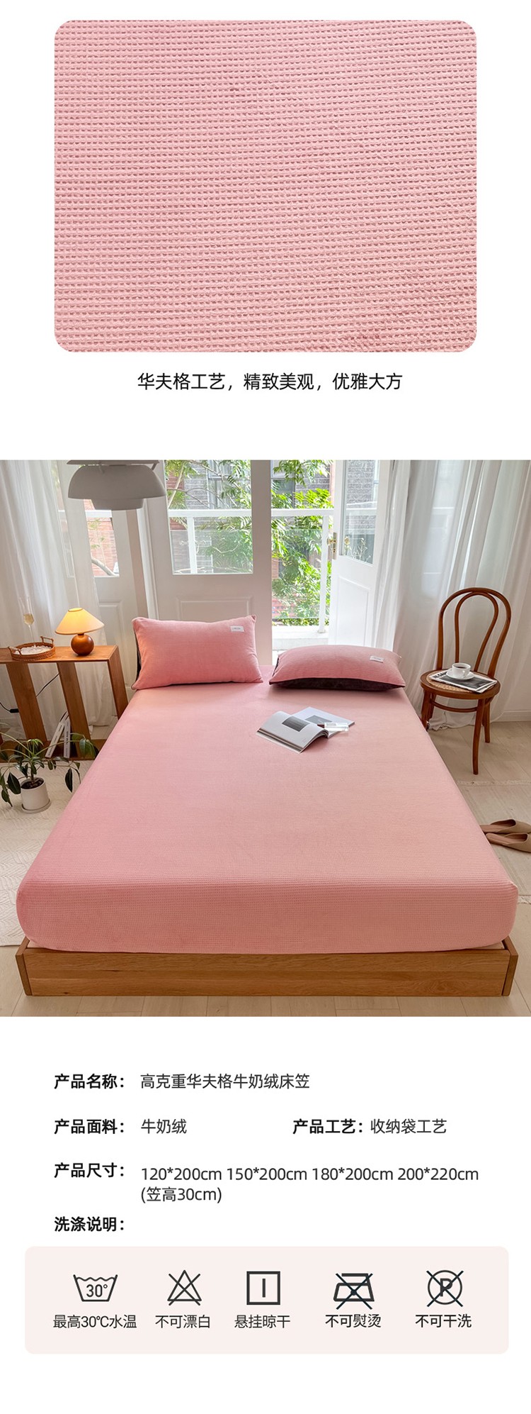 商品名称:山舍 2022新款高克重华夫格牛奶绒床笠和床笠三件套 粉色