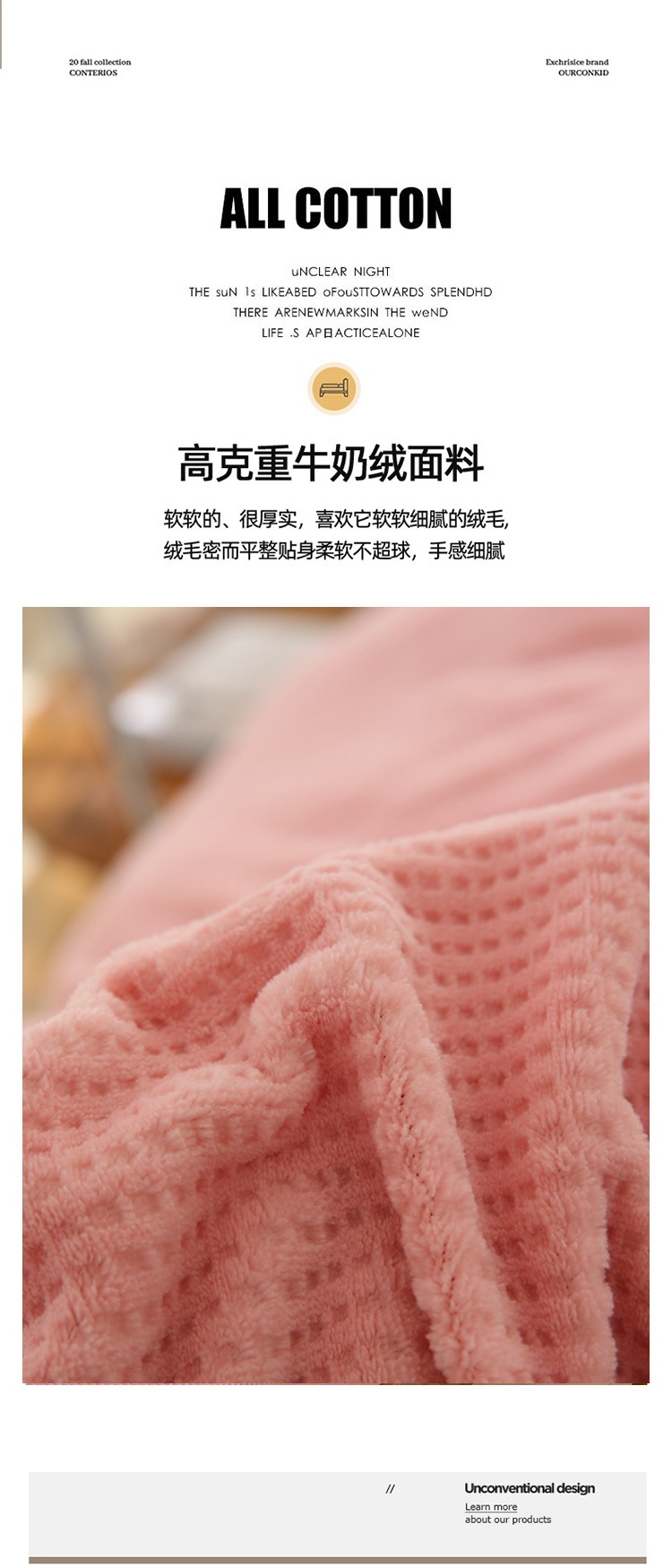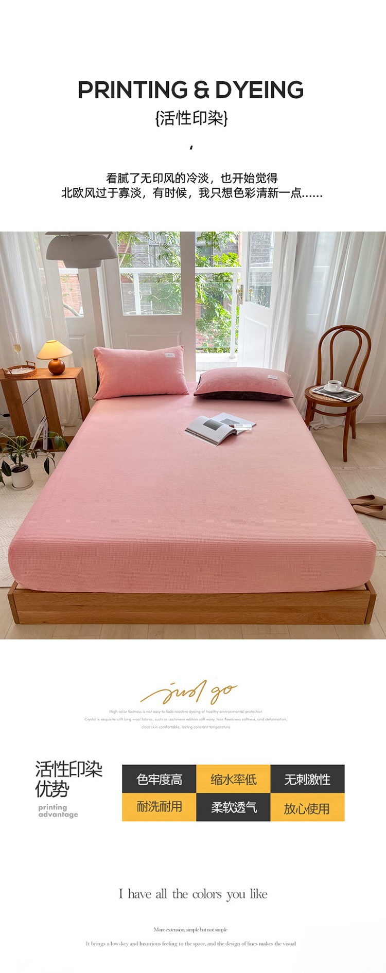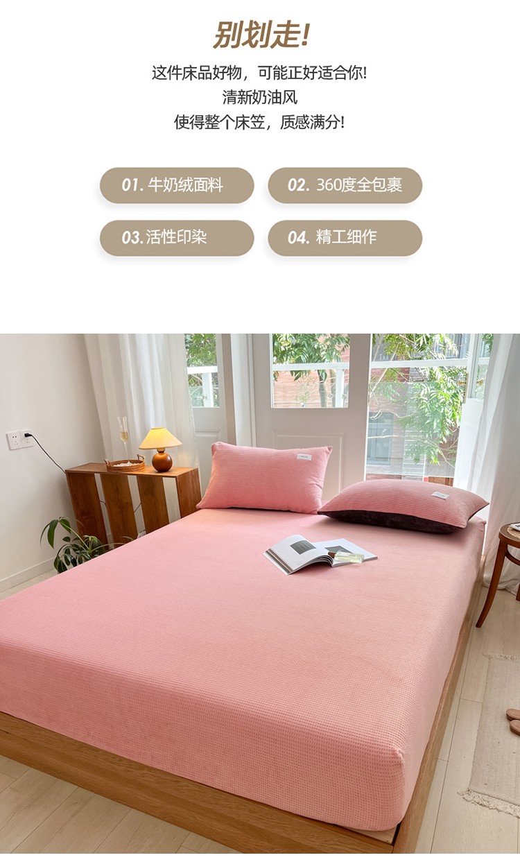 商品名称:山舍 2022新款高克重华夫格牛奶绒床笠和床笠三件套 粉色