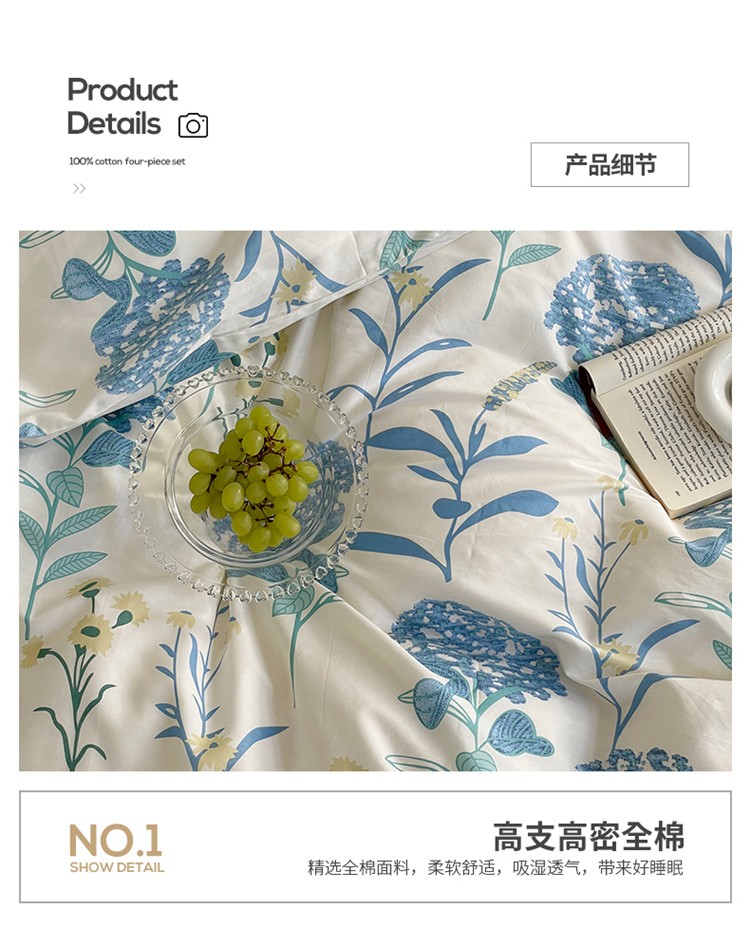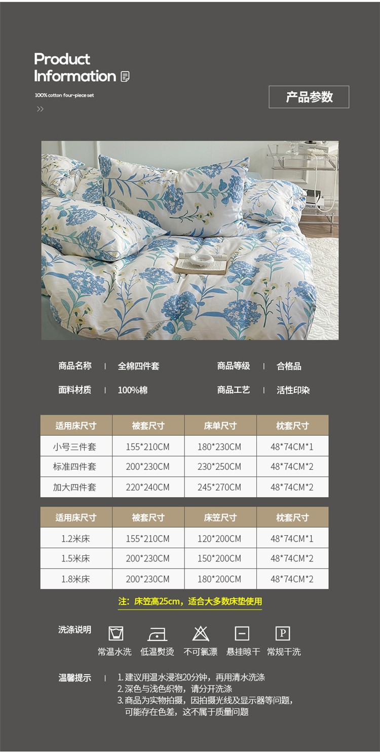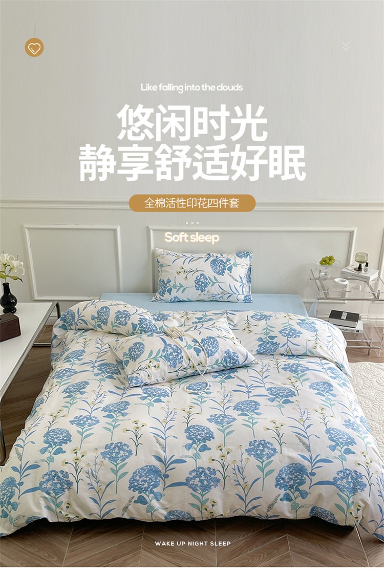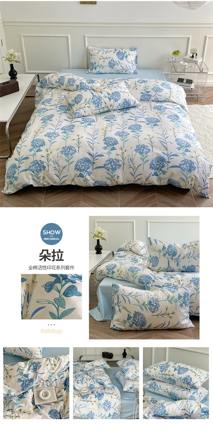 商品名称:窝米 2022秋季新品活性印花全棉四件套12款 朵拉