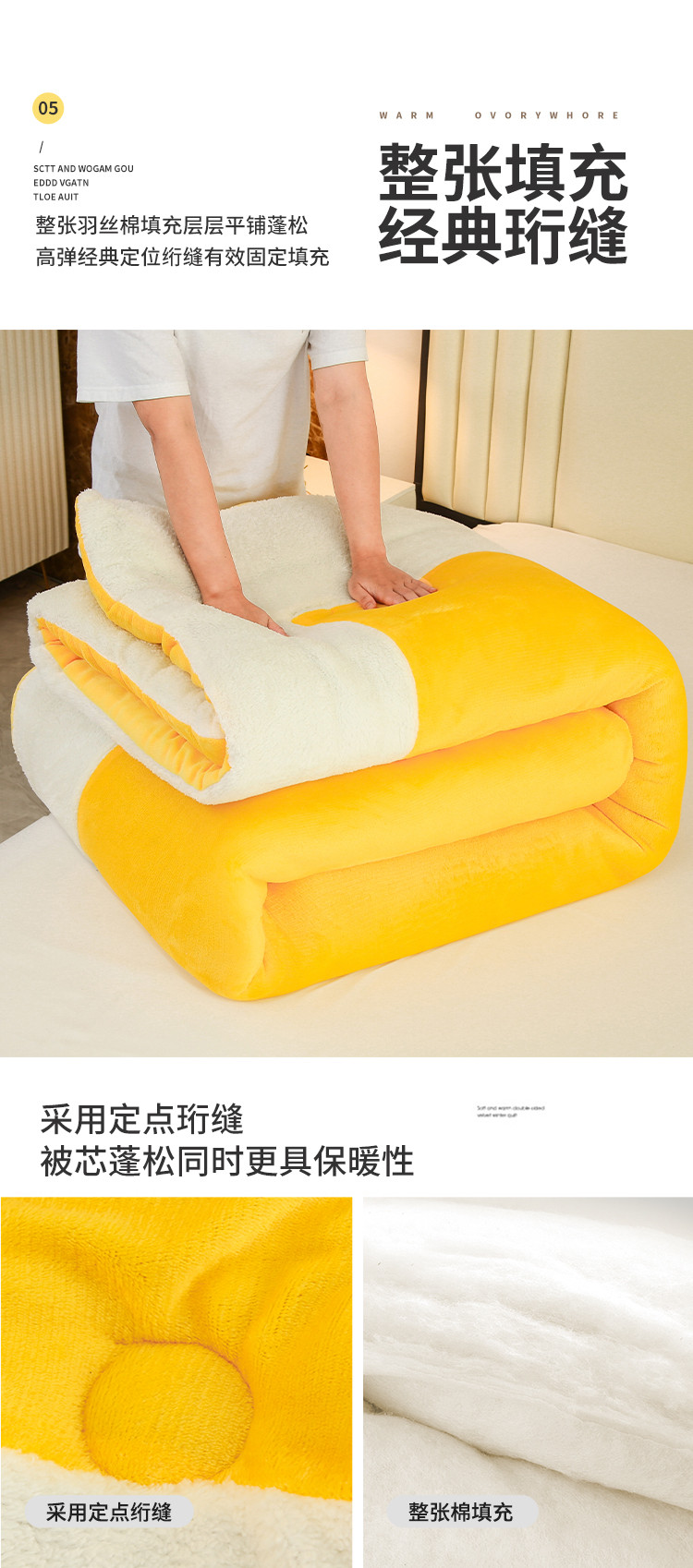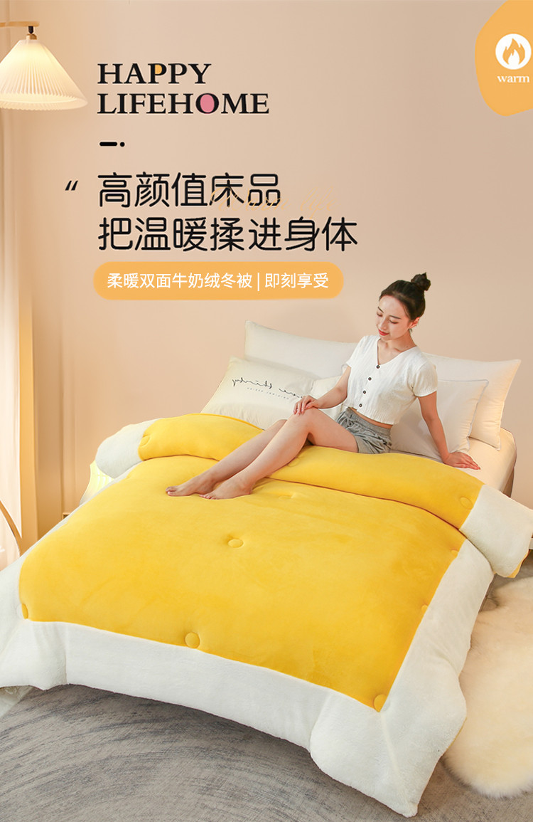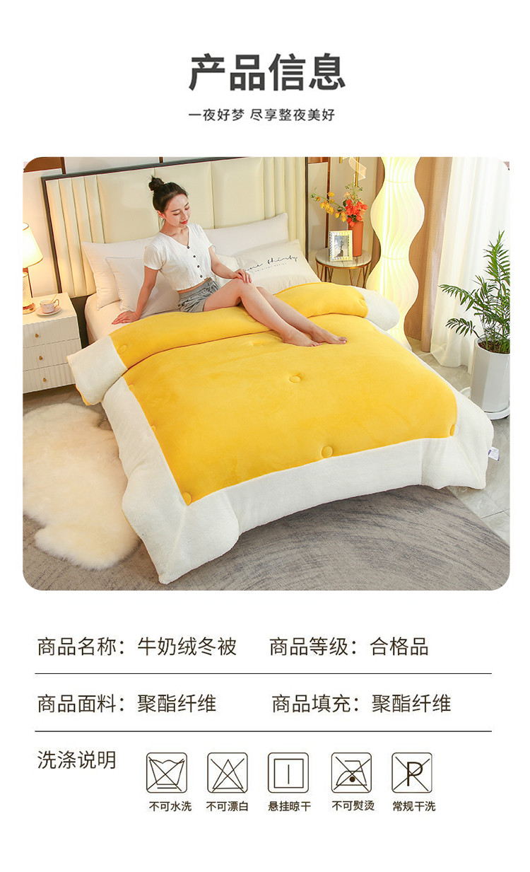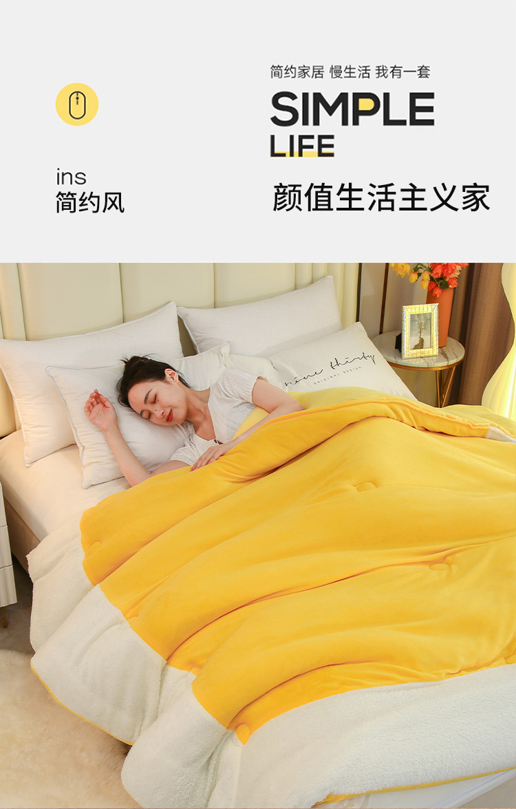 商品名称:蓝冰家纺 2022新款加厚保暖牛奶绒水晶绒拼角冬被 柠檬黄