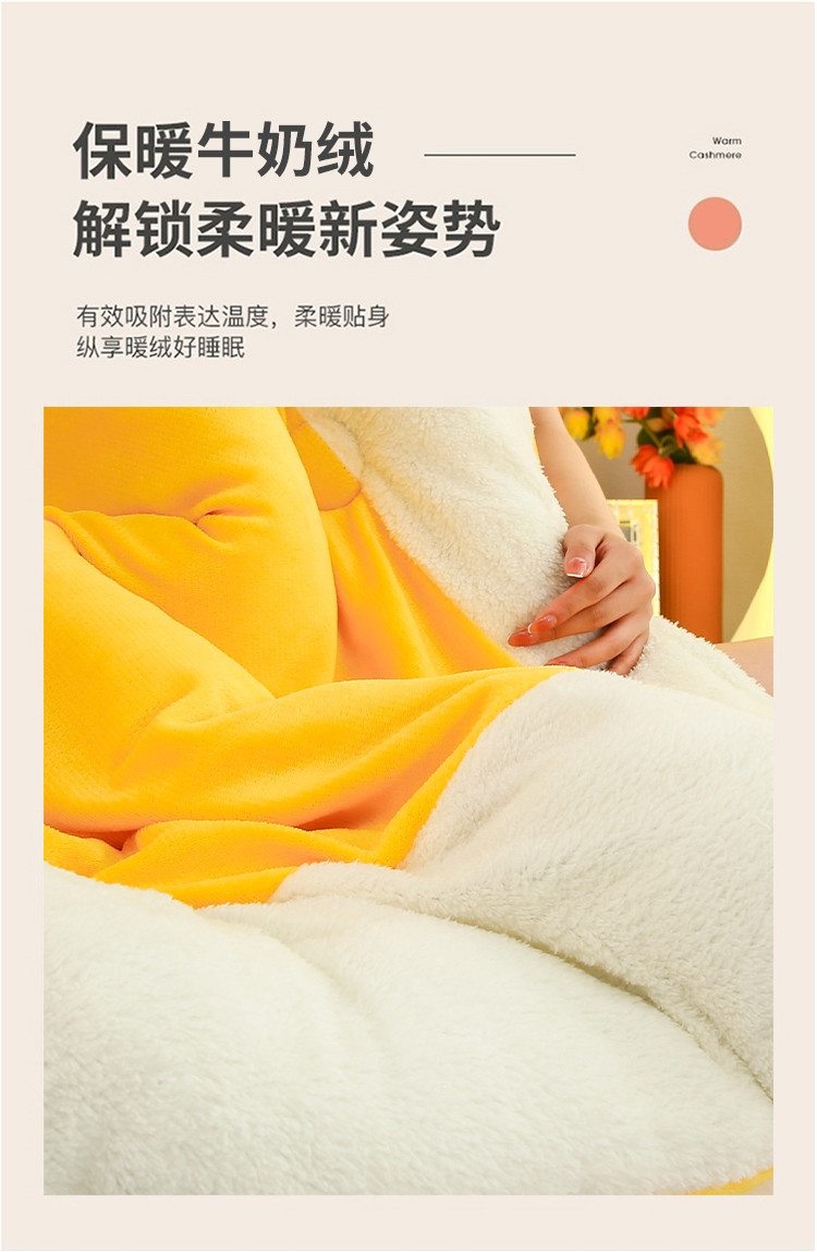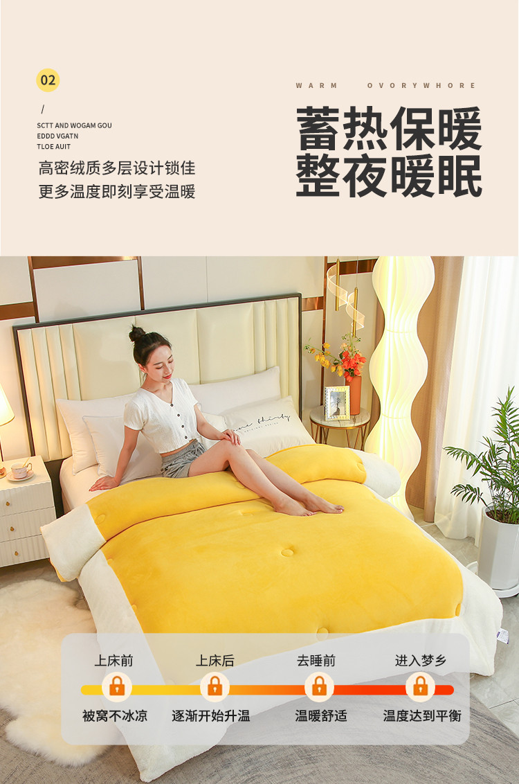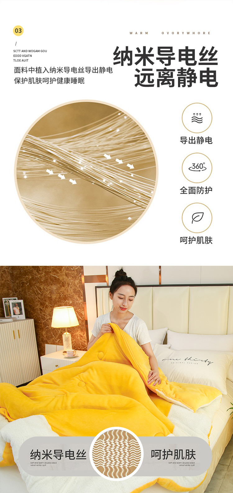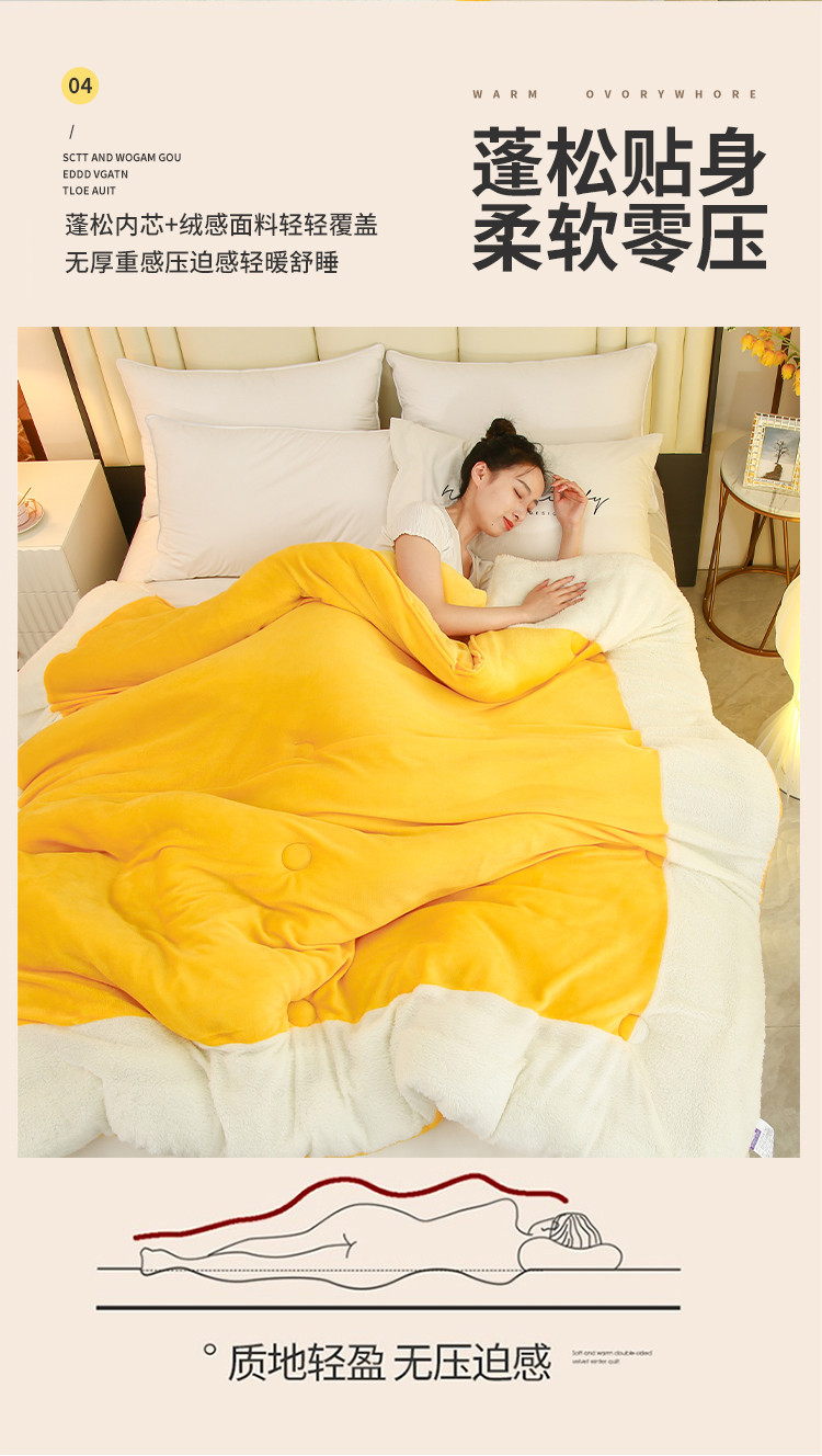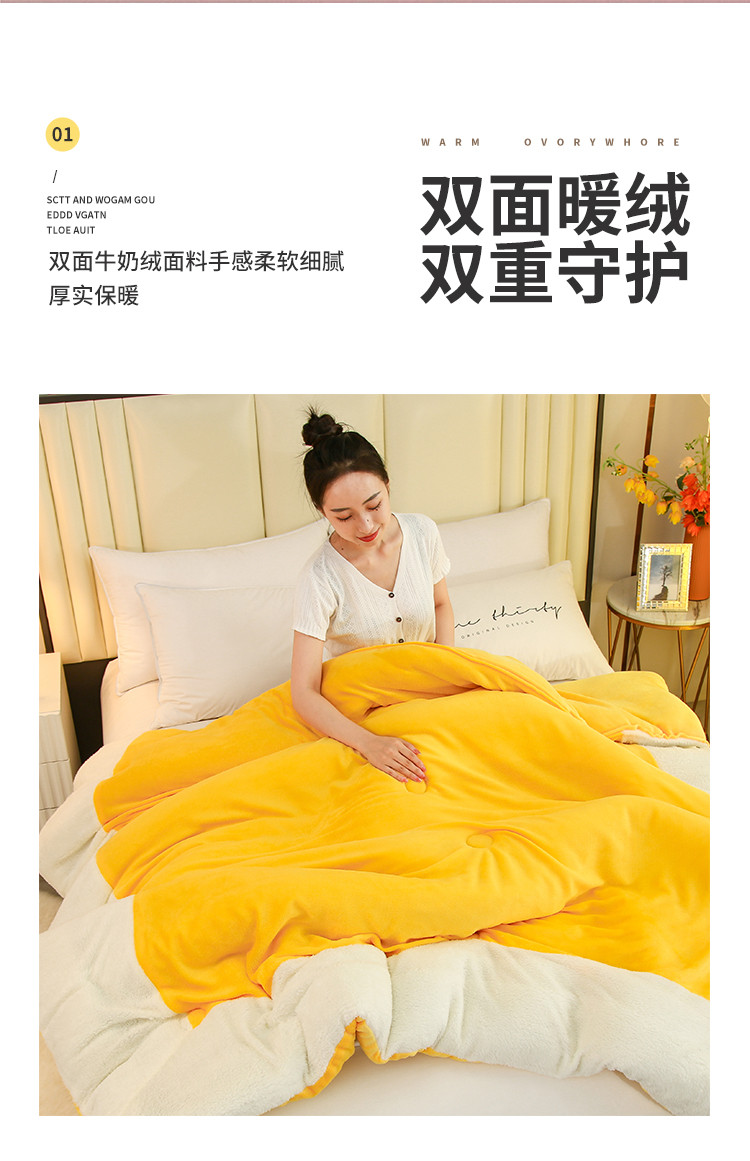 商品名称:蓝冰家纺 2022新款加厚保暖牛奶绒水晶绒拼角冬被 柠檬黄