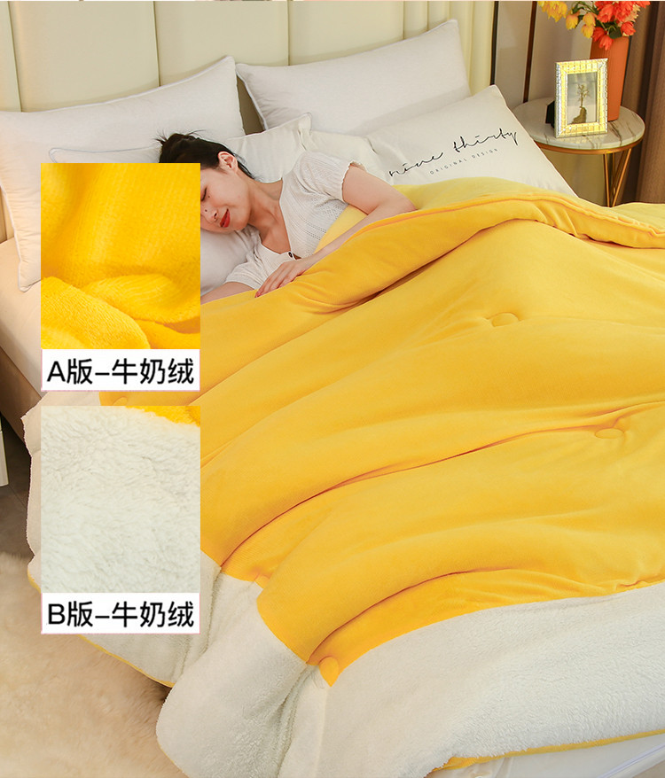 蓝冰家纺 2022新款加厚保暖牛奶绒水晶绒拼角冬被 柠檬黄