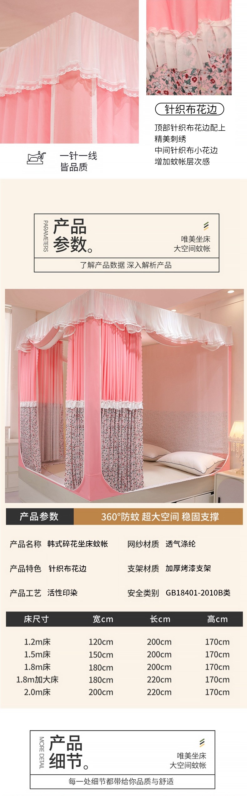 商品名称:雪姿 2023新款韩式碎花坐床蚊帐 韩式碎花粉色
