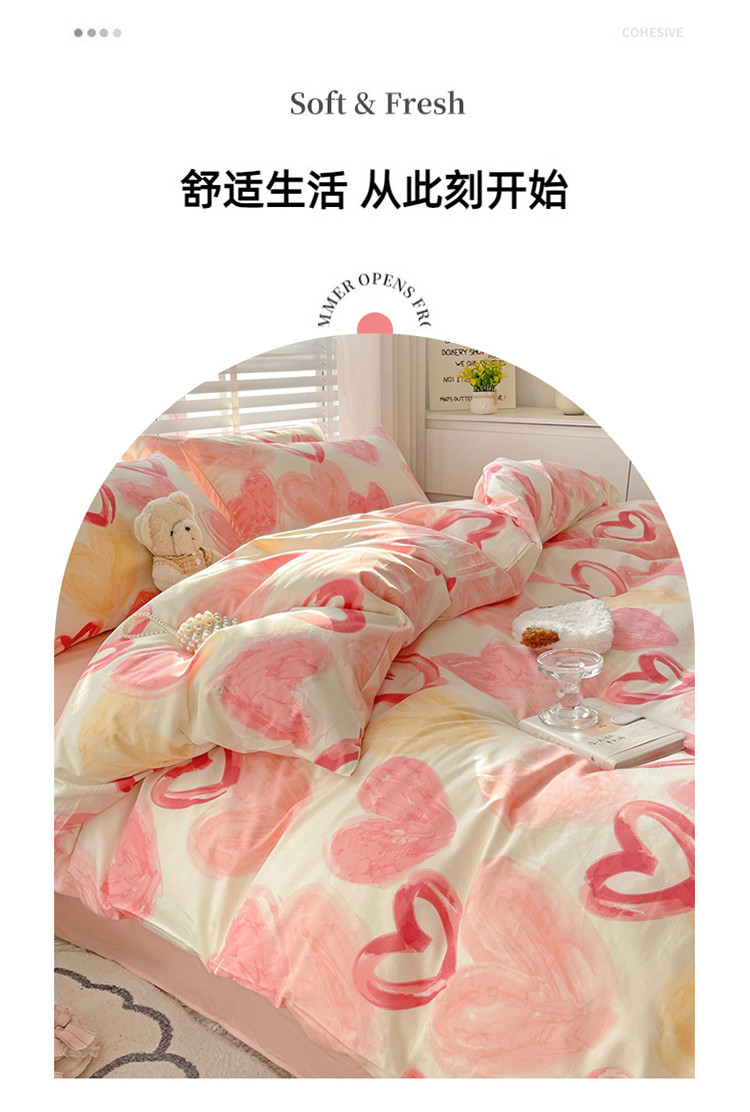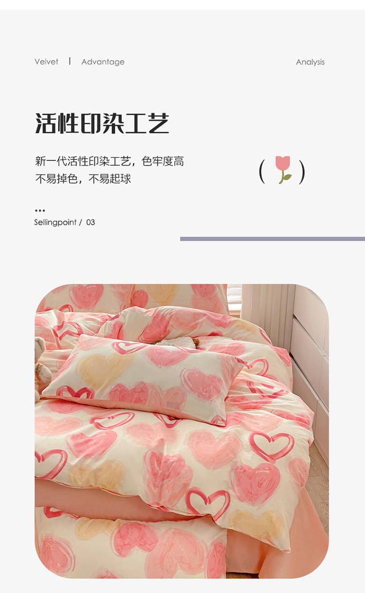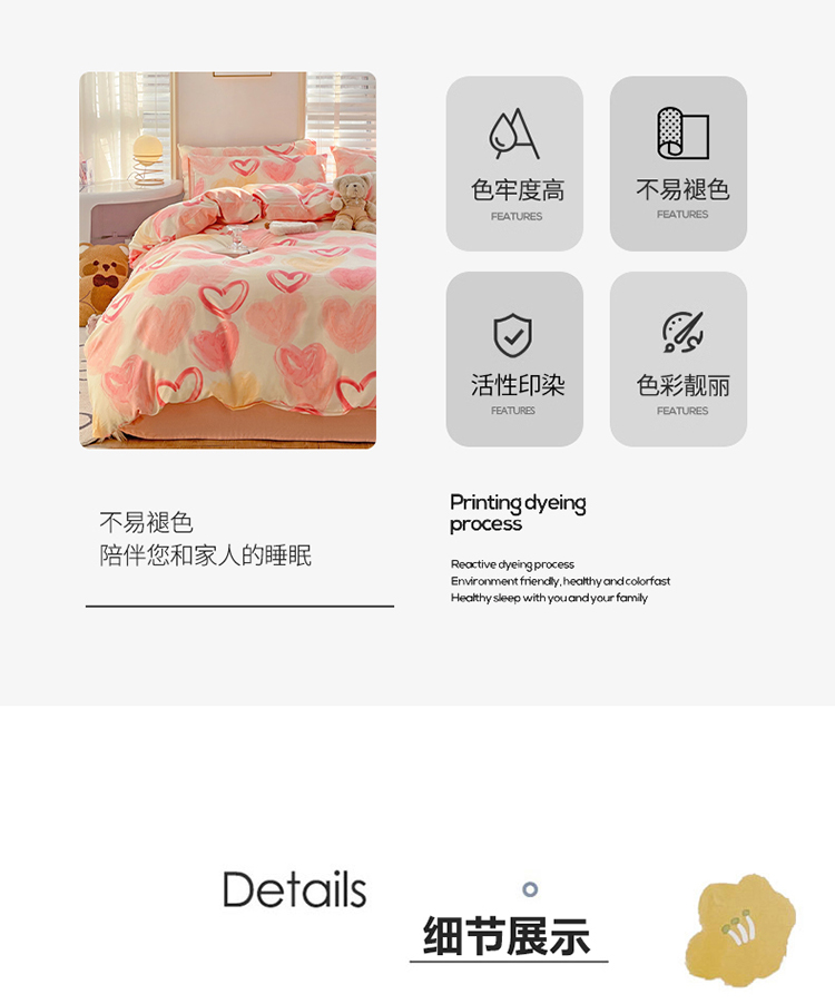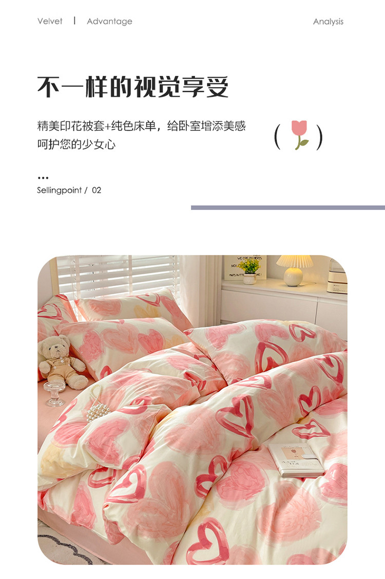 乐童2024新款吊边款牛奶绒四件套 爱意满满,爱意满满