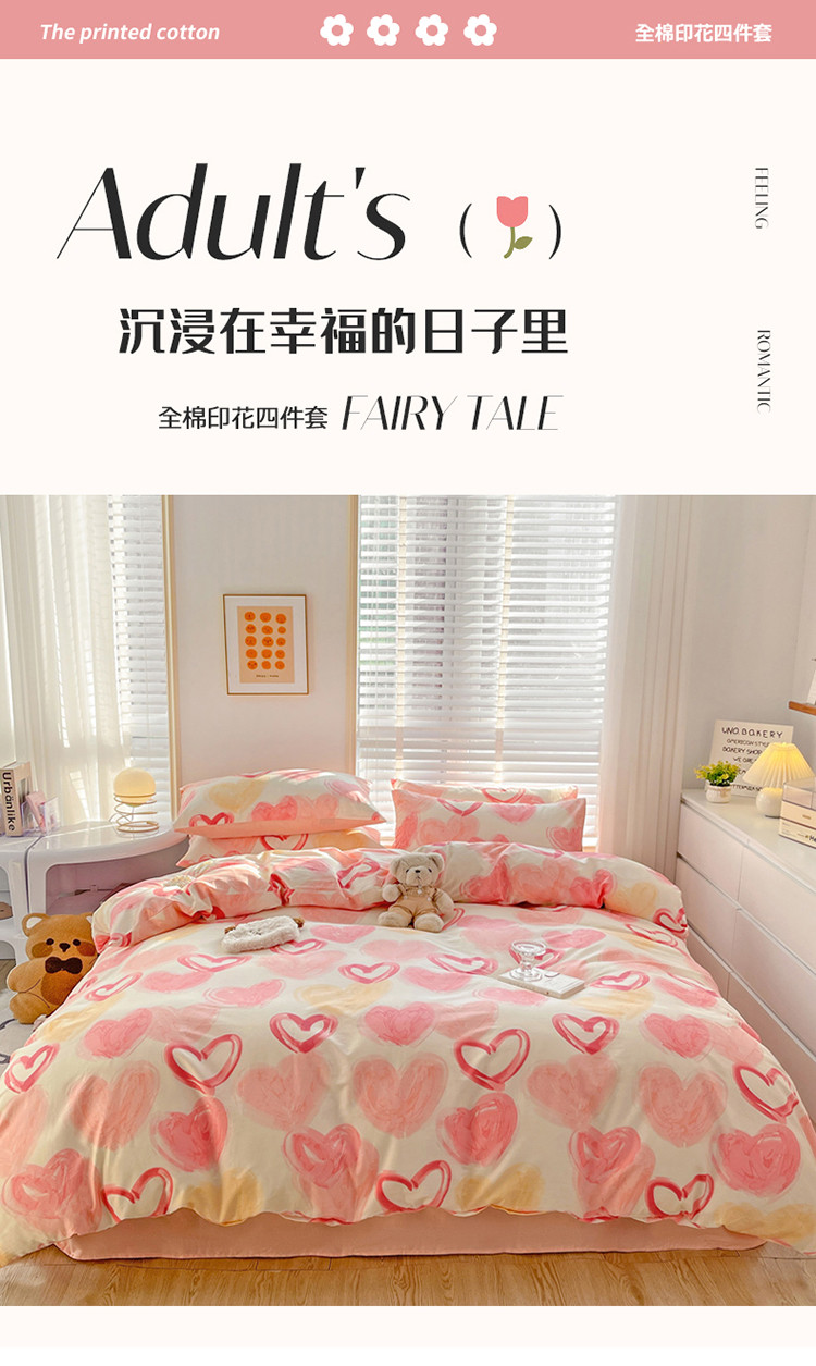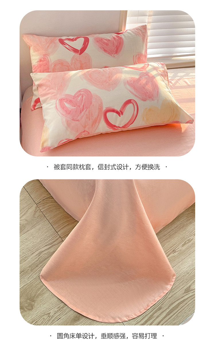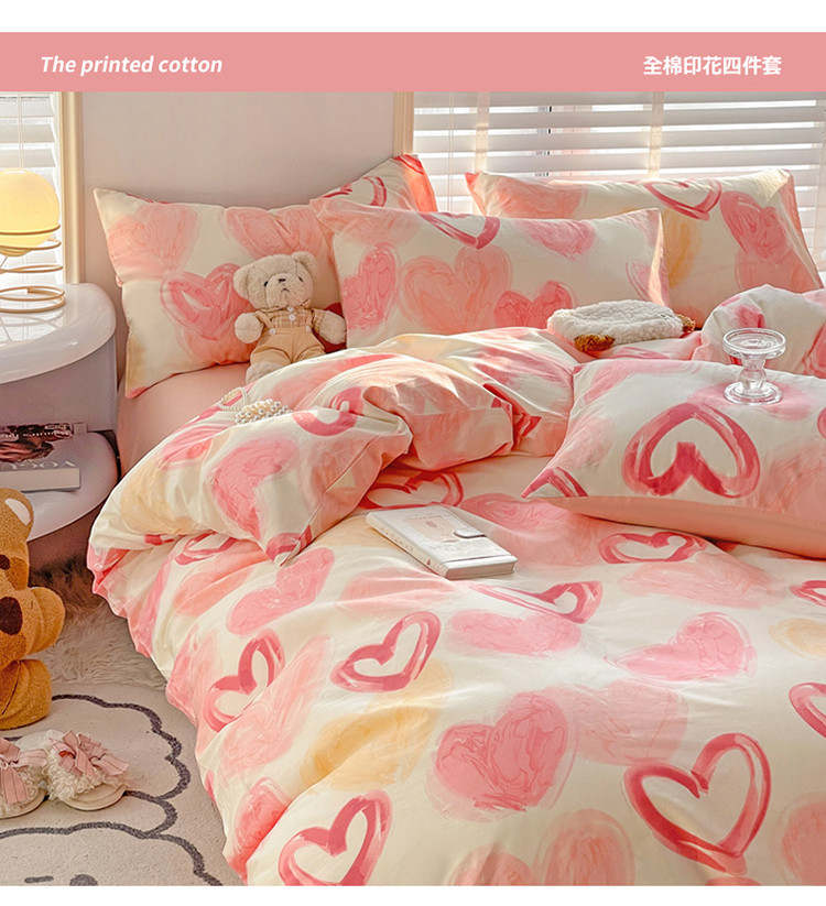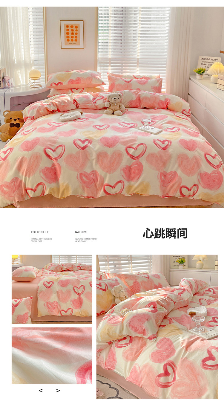 乐童2024新款吊边款牛奶绒四件套 爱意满满,爱意满满