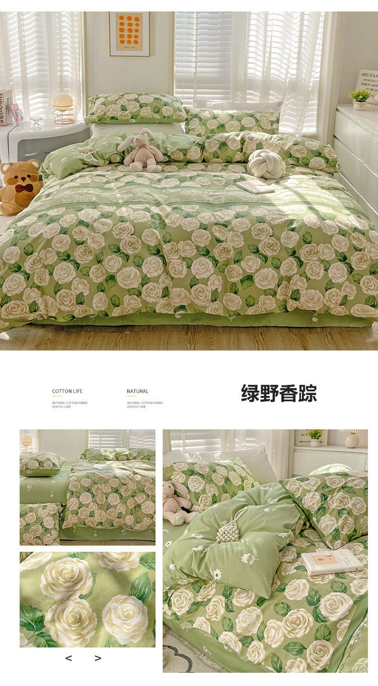 (总)2024新款13372纯棉大版印+绣小清新款四件套,葡萄花束,你好彼得,草莓之恋