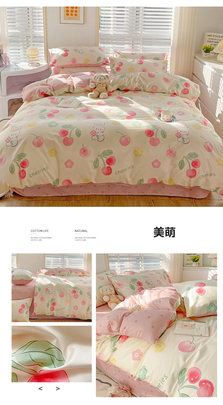 2024新款13372纯棉大版印+绣小清新款四件套 草莓之恋,草莓之恋