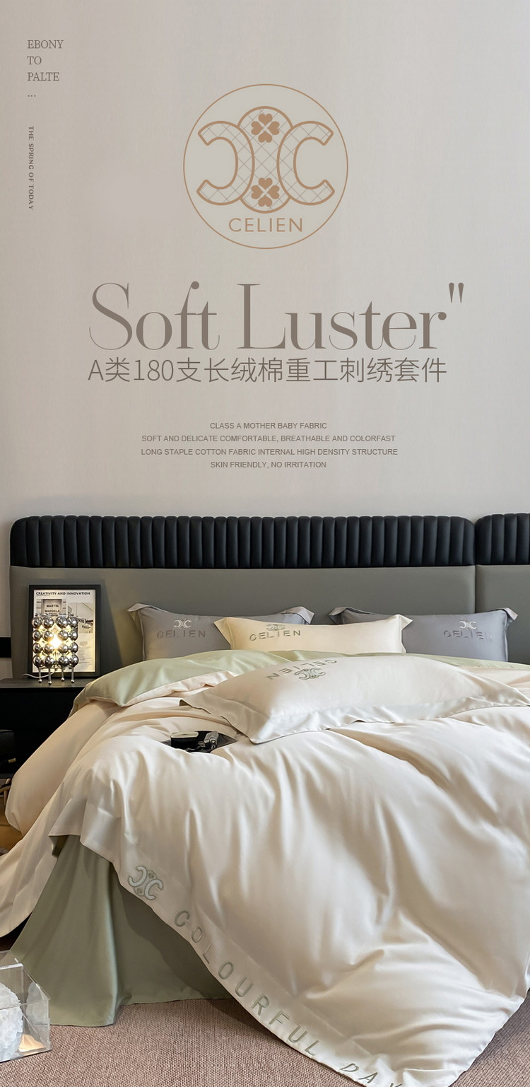 商品名称:618家纺 2023新款100支长绒棉四件套-安娜系列 安娜-绿