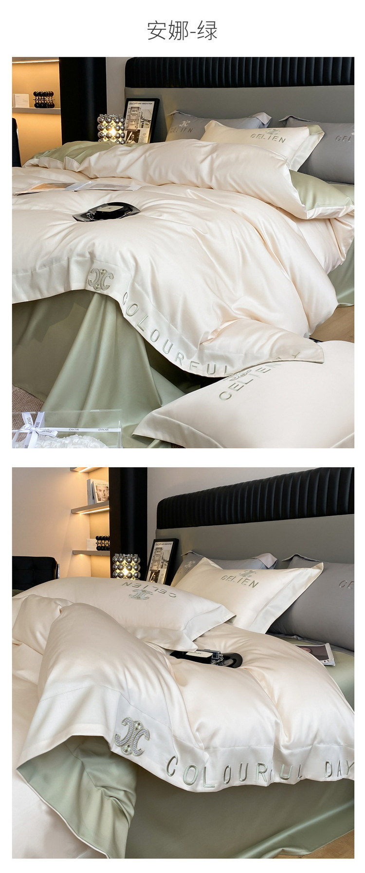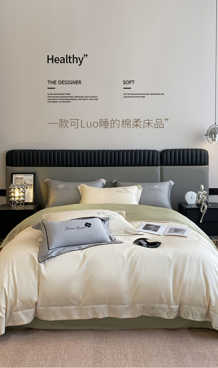 618家纺 2023新款100支长绒棉四件套-安娜系列 安娜-绿