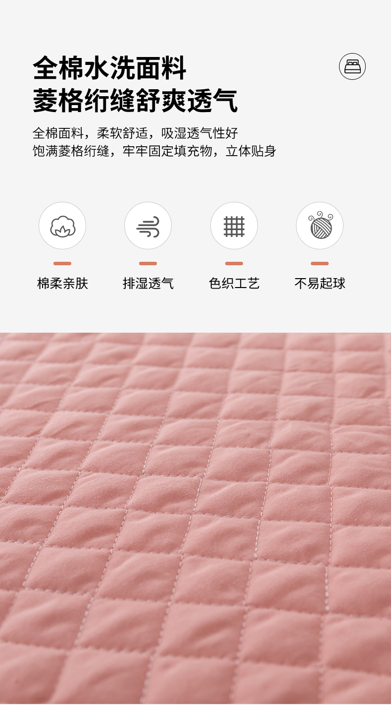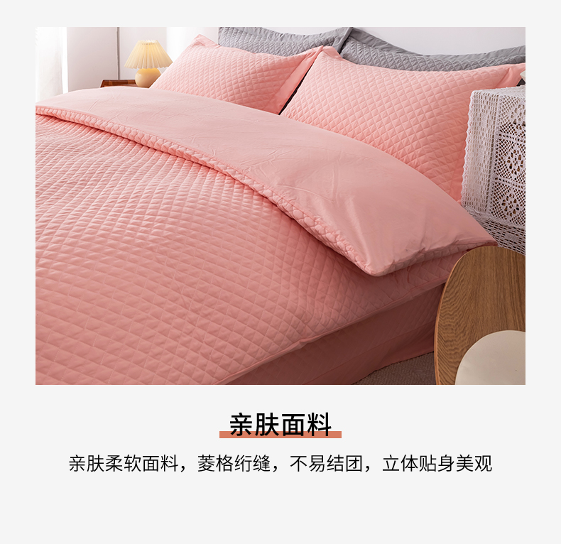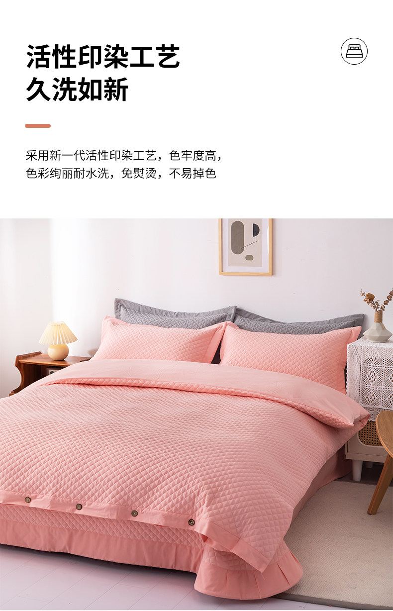 商品名称:优乐家纺 2025新款全棉四件套水洗纯棉夹棉绗缝加厚被罩 爱情粉
