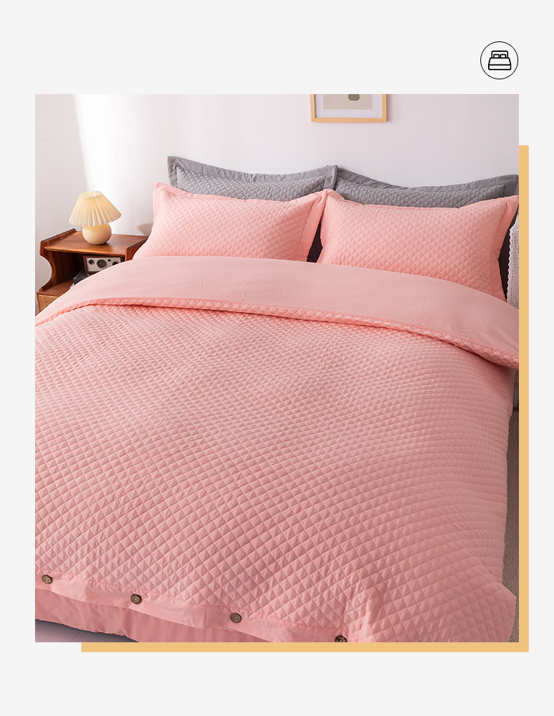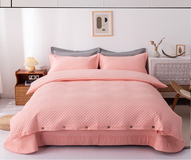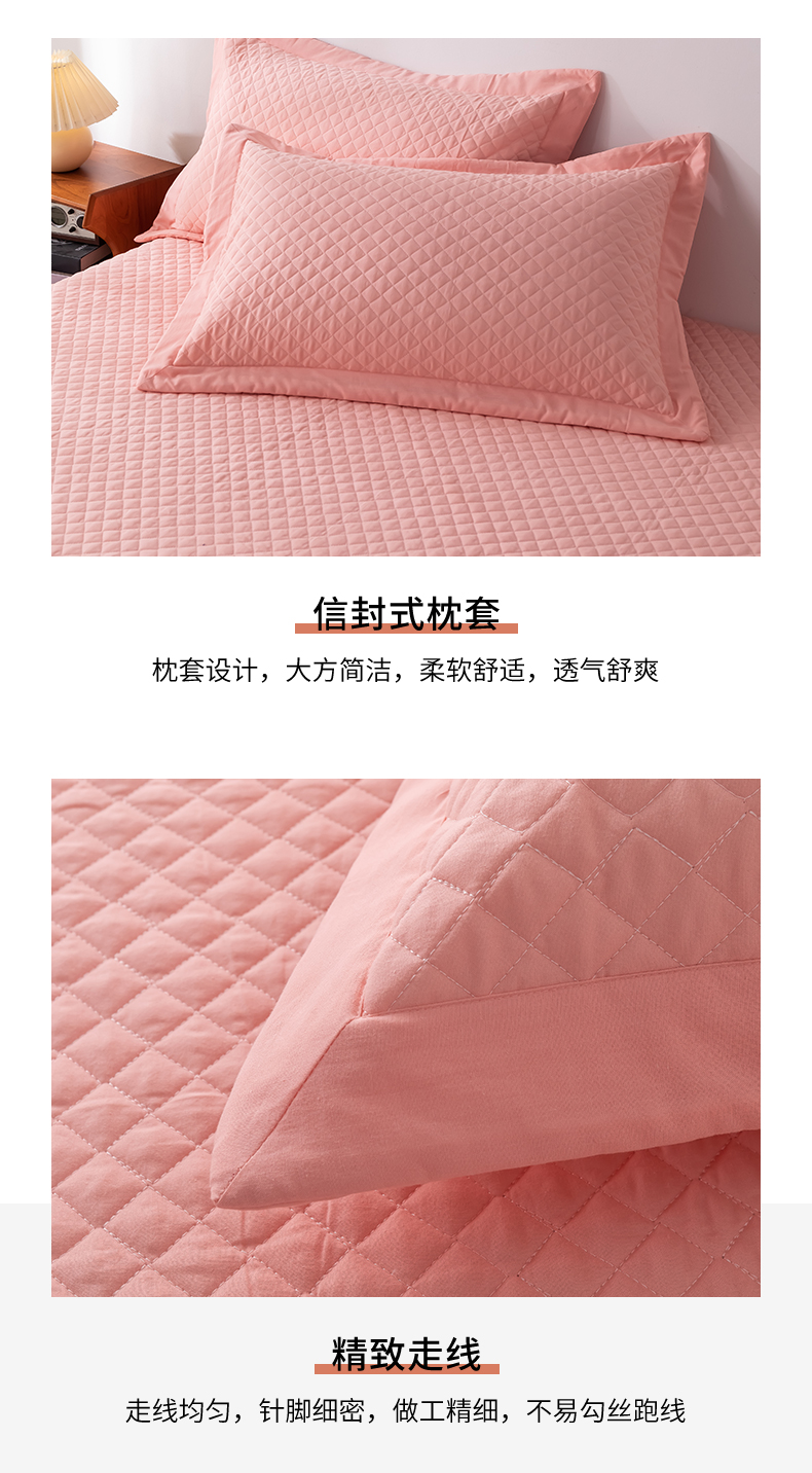 优乐家纺 2025新款全棉四件套水洗纯棉夹棉绗缝加厚被罩 爱情粉