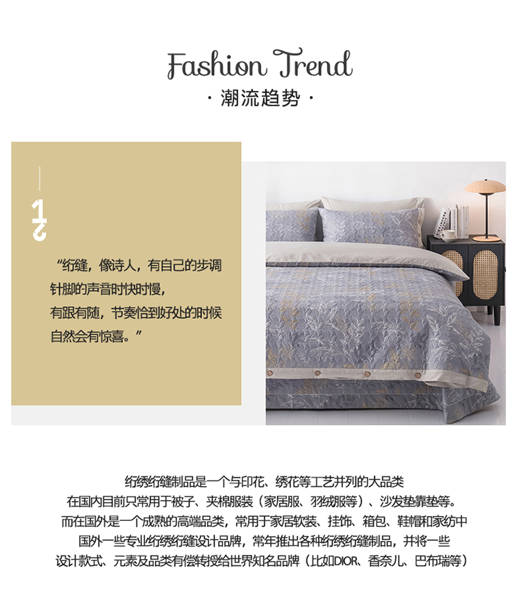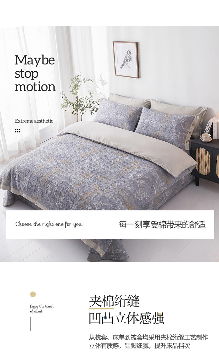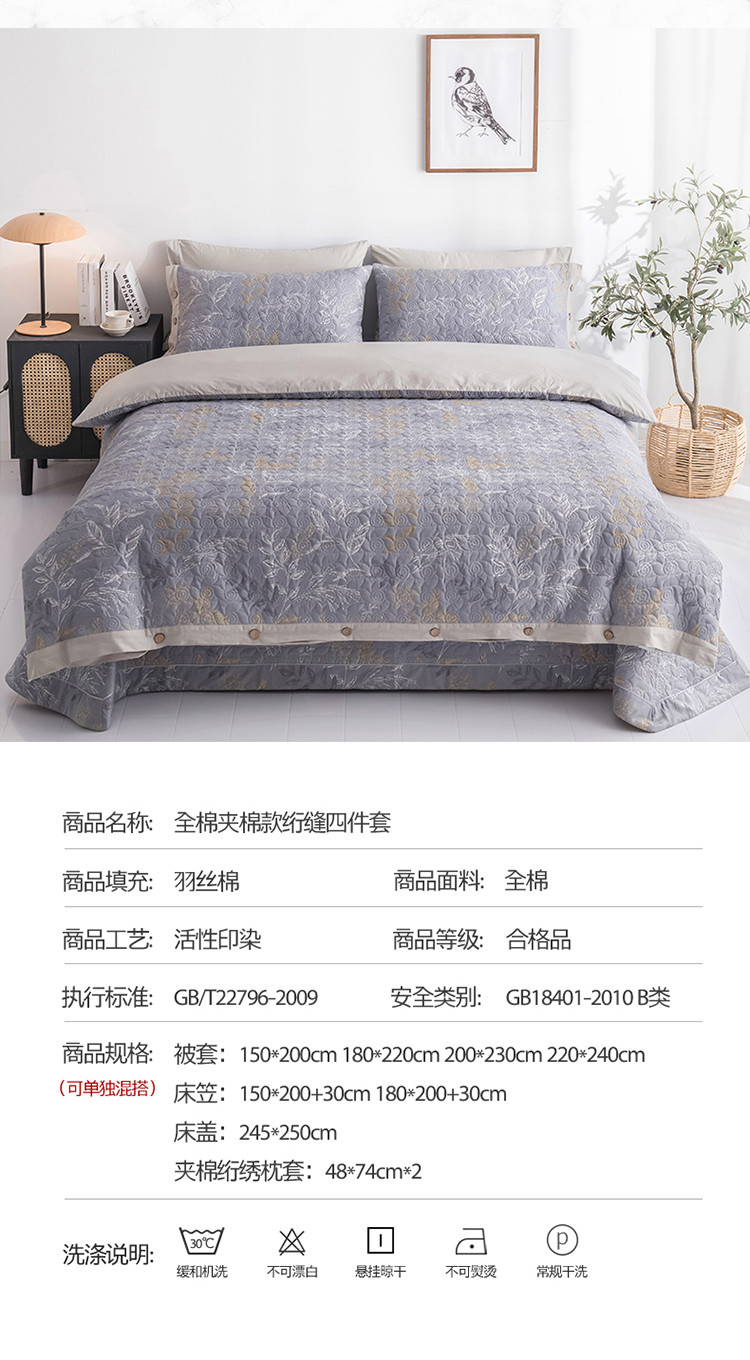 当前位置: 91家纺网 > 商品网购 > 床品套件 > 四件套 > 全棉普通四件套 > 优乐家纺 2023新款全棉印花绗绣四件套 飞羽