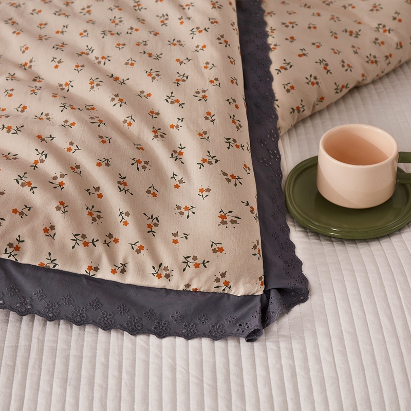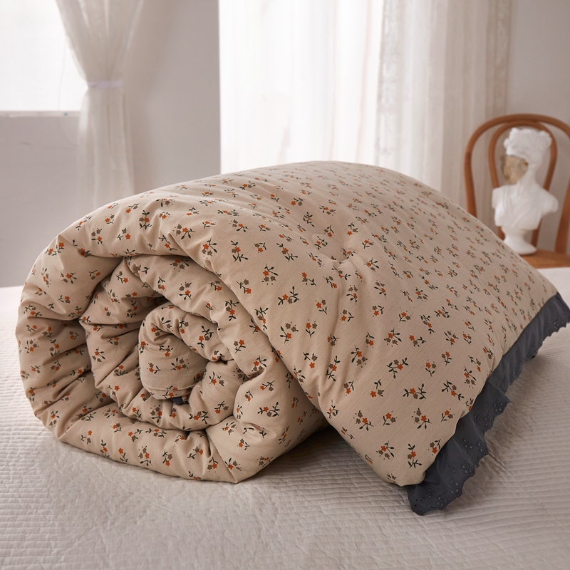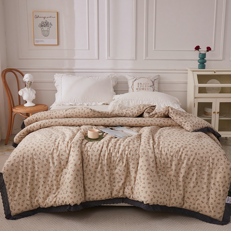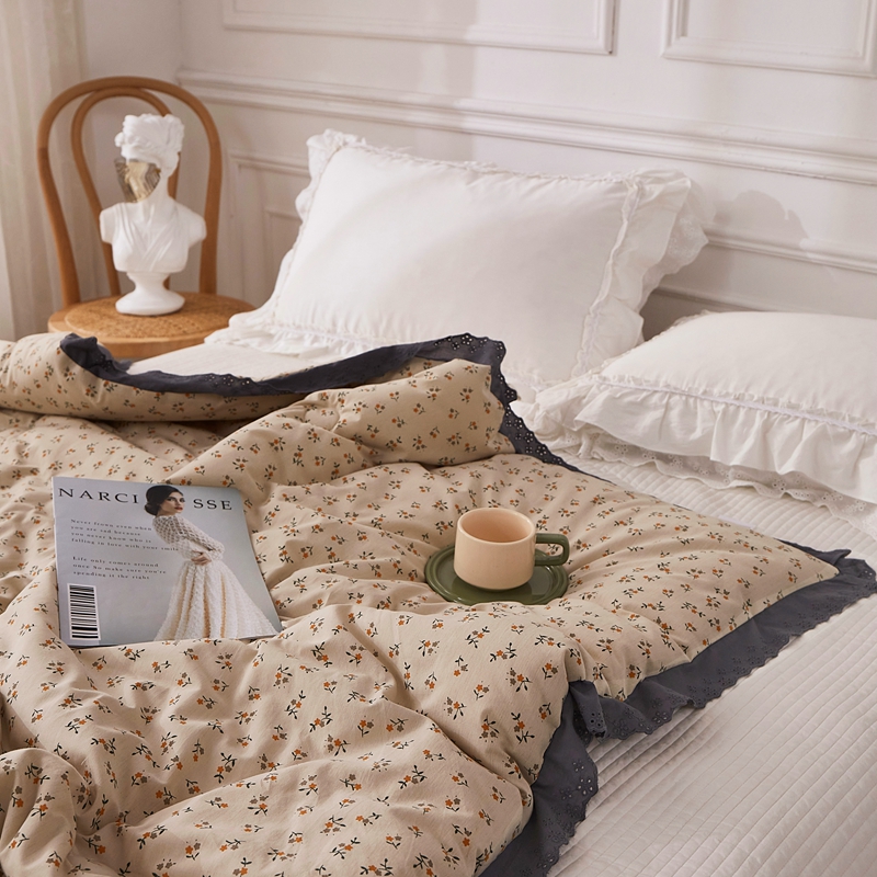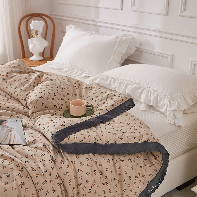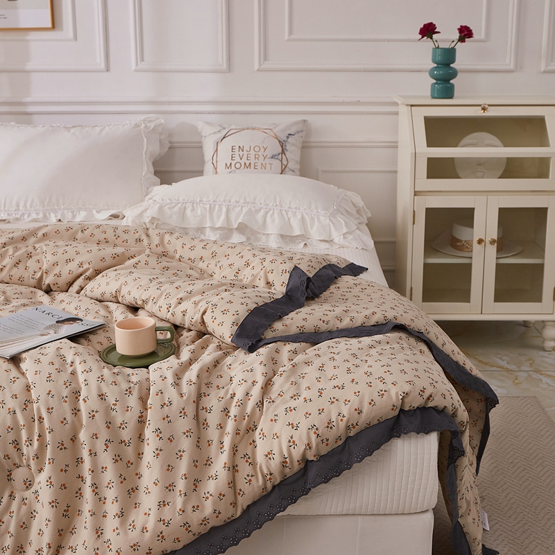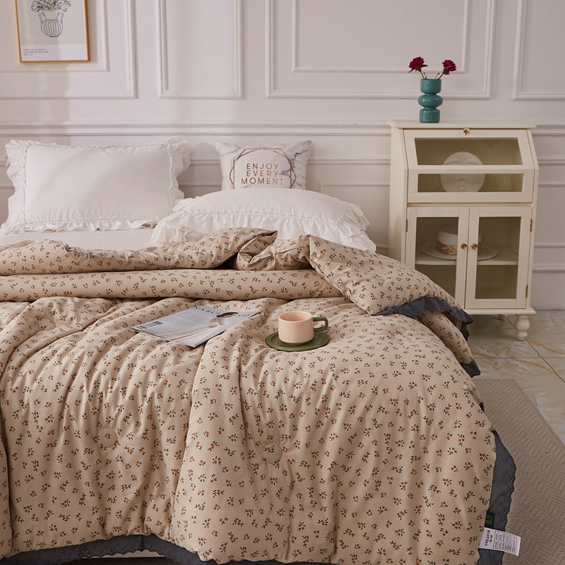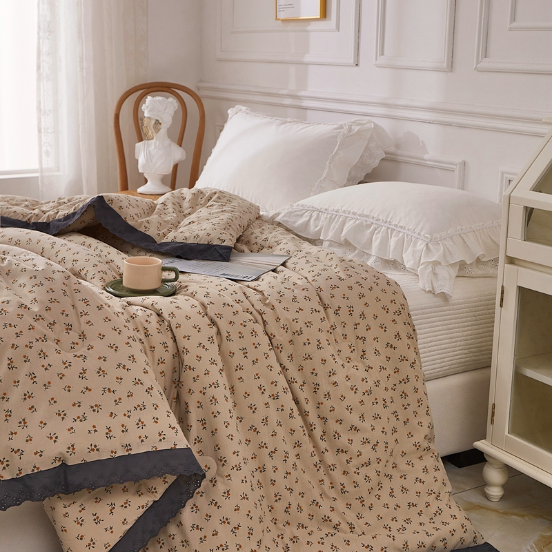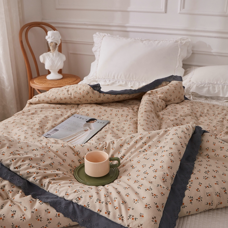 上喜 热卖全棉水洗棉印花花边一体被 莱茵蓝