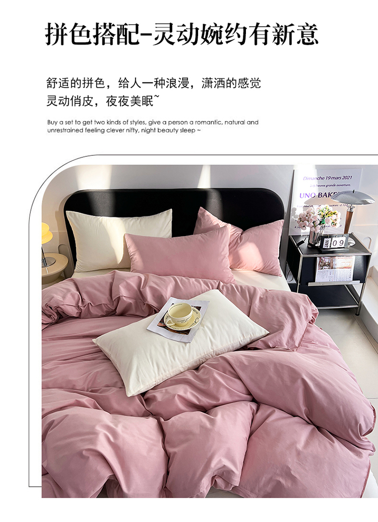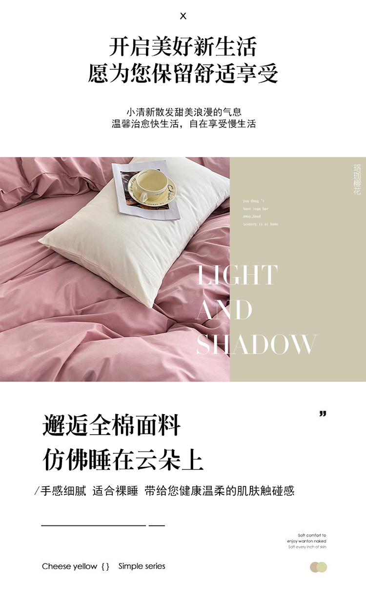 当前位置: 91家纺网 > 商品网购 > 床品套件 > 四件套 > 全棉普通四件套 > 恩和 2024新款全棉13374全棉ins纯色拼色四件套 珞珈樱花