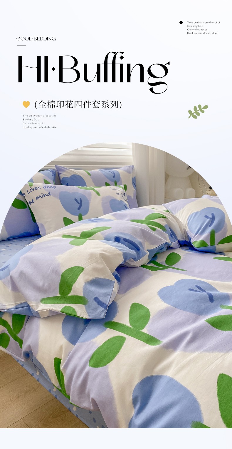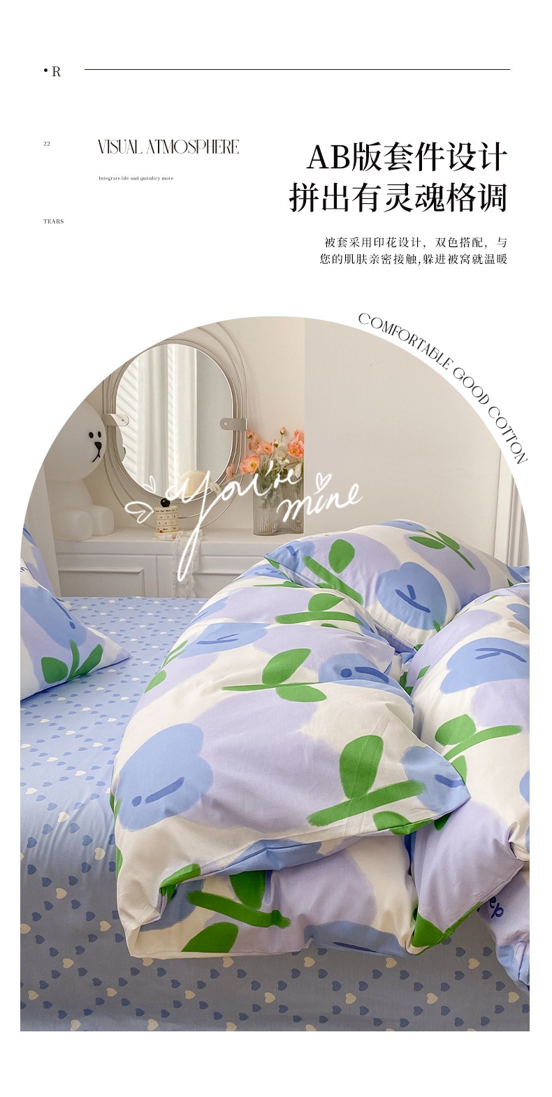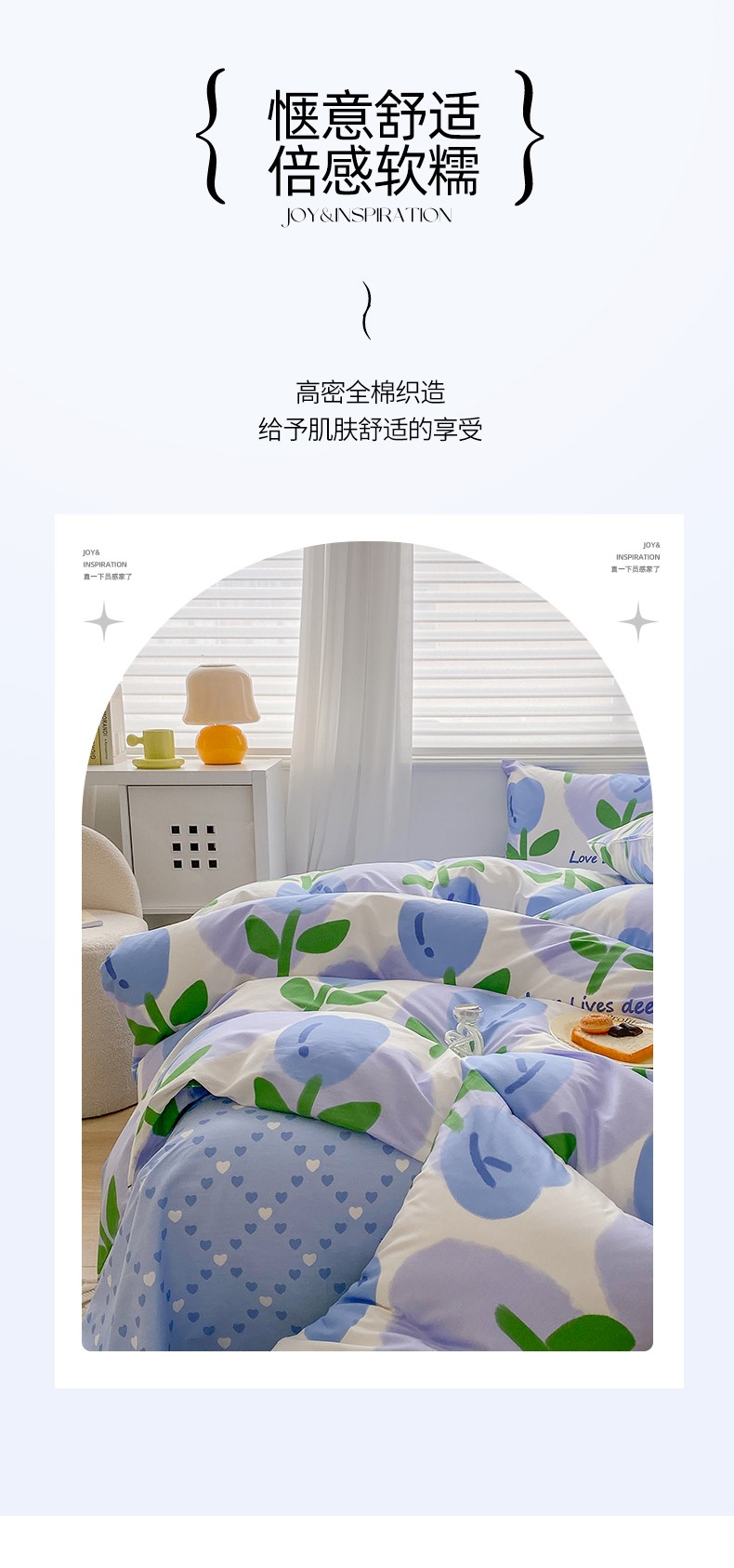 商品名称:木堇家居 2023新款13372全棉印花四件套 蓝菲
