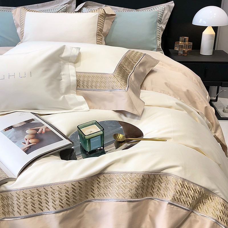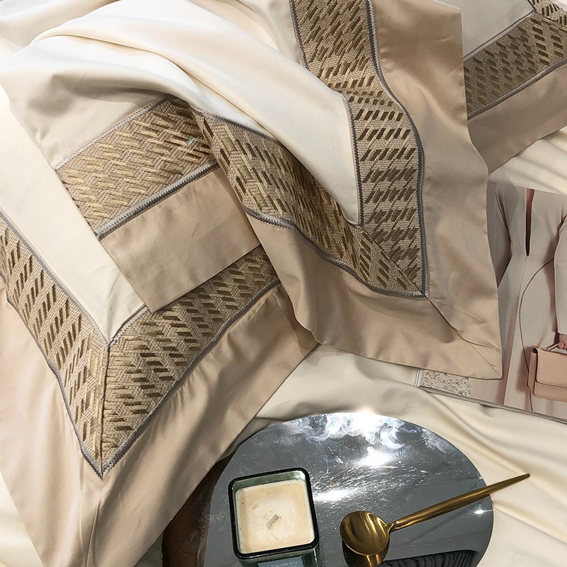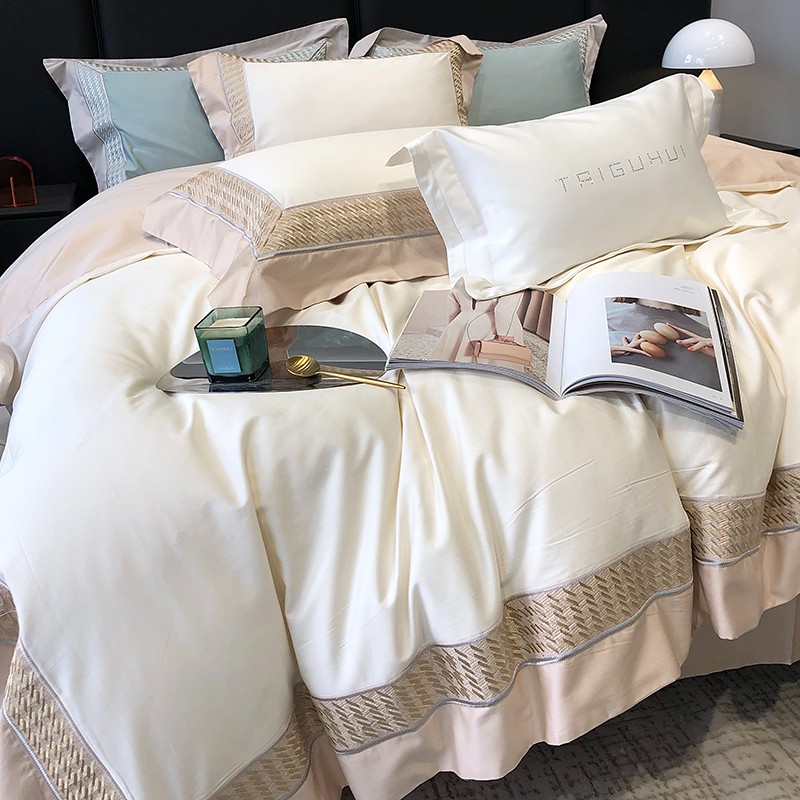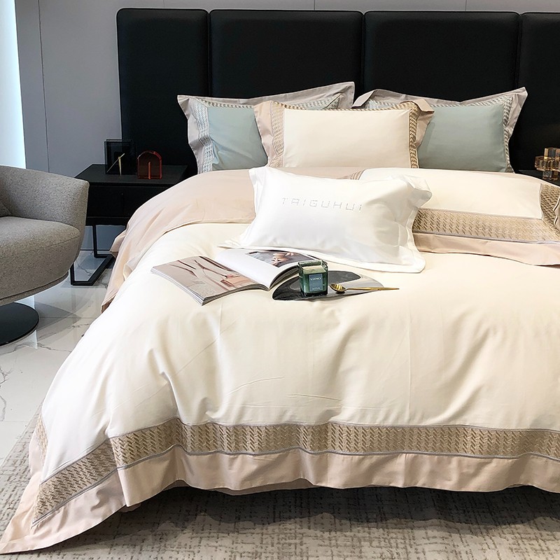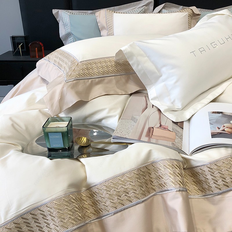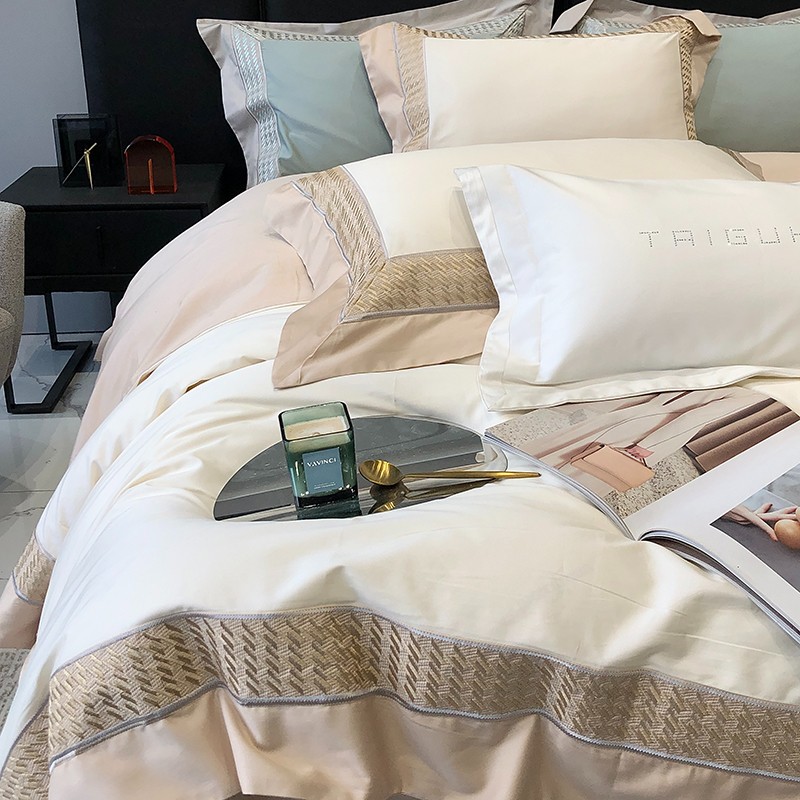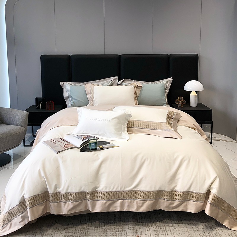 商品名称:太古汇 2023新款A类长绒棉刺绣千鸟格四件套-格伦格系列 长绒棉格伦格-白色