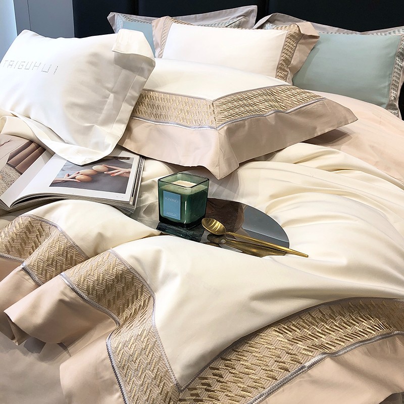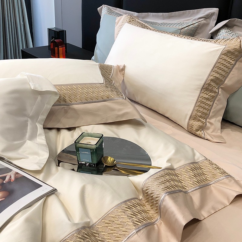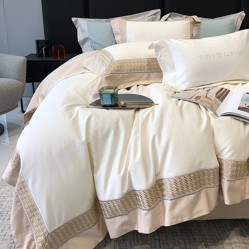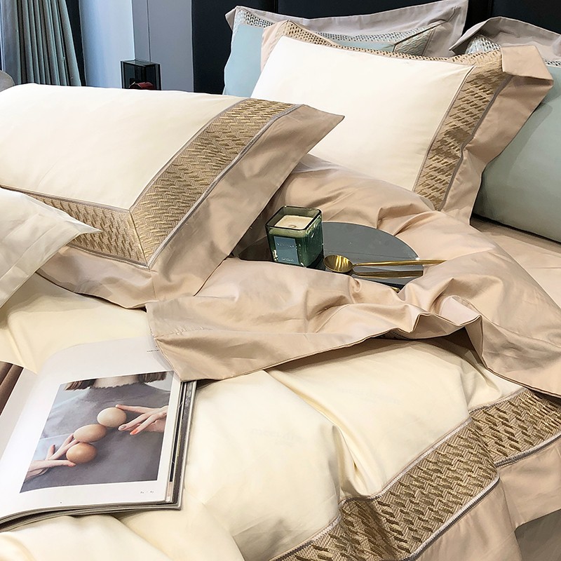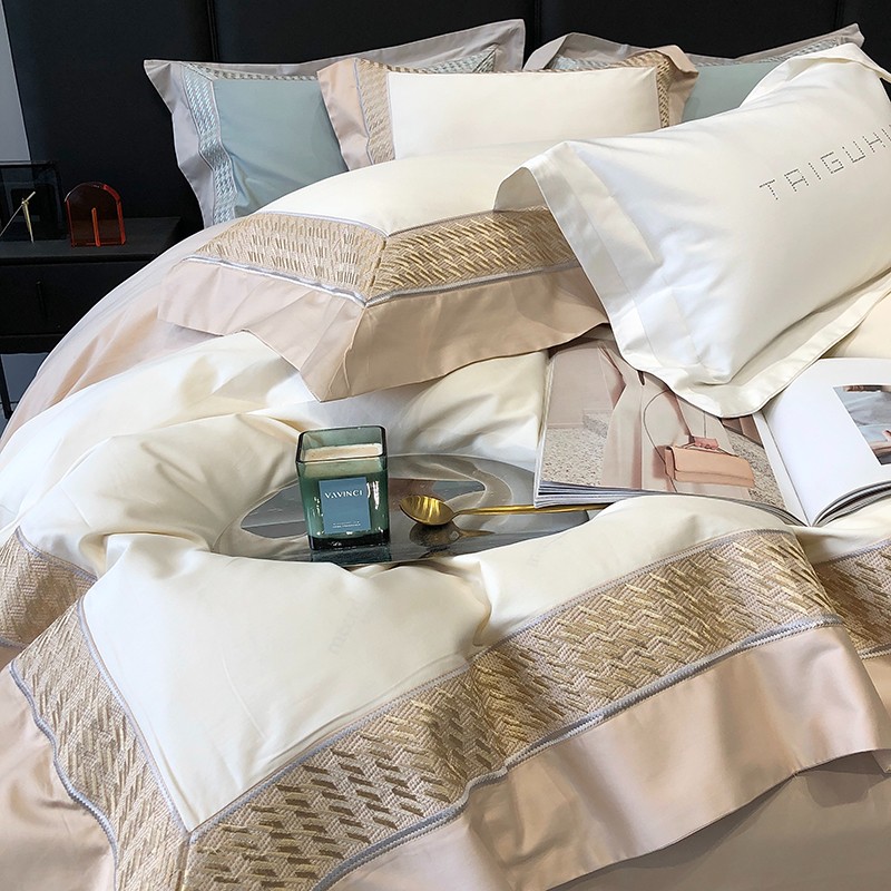 (总)太古汇家居 2025新款高紧密提花爱尔兰系列四件套,爱尔兰-粉色,爱尔兰-蓝灰,爱尔兰-米色