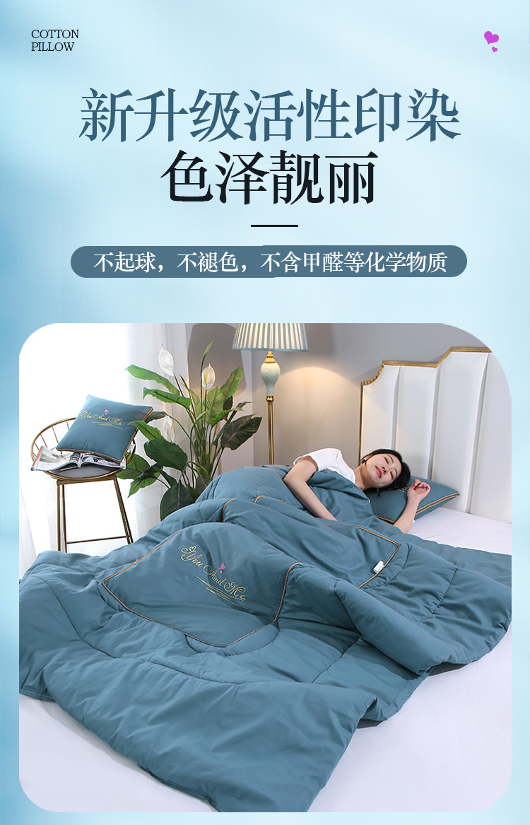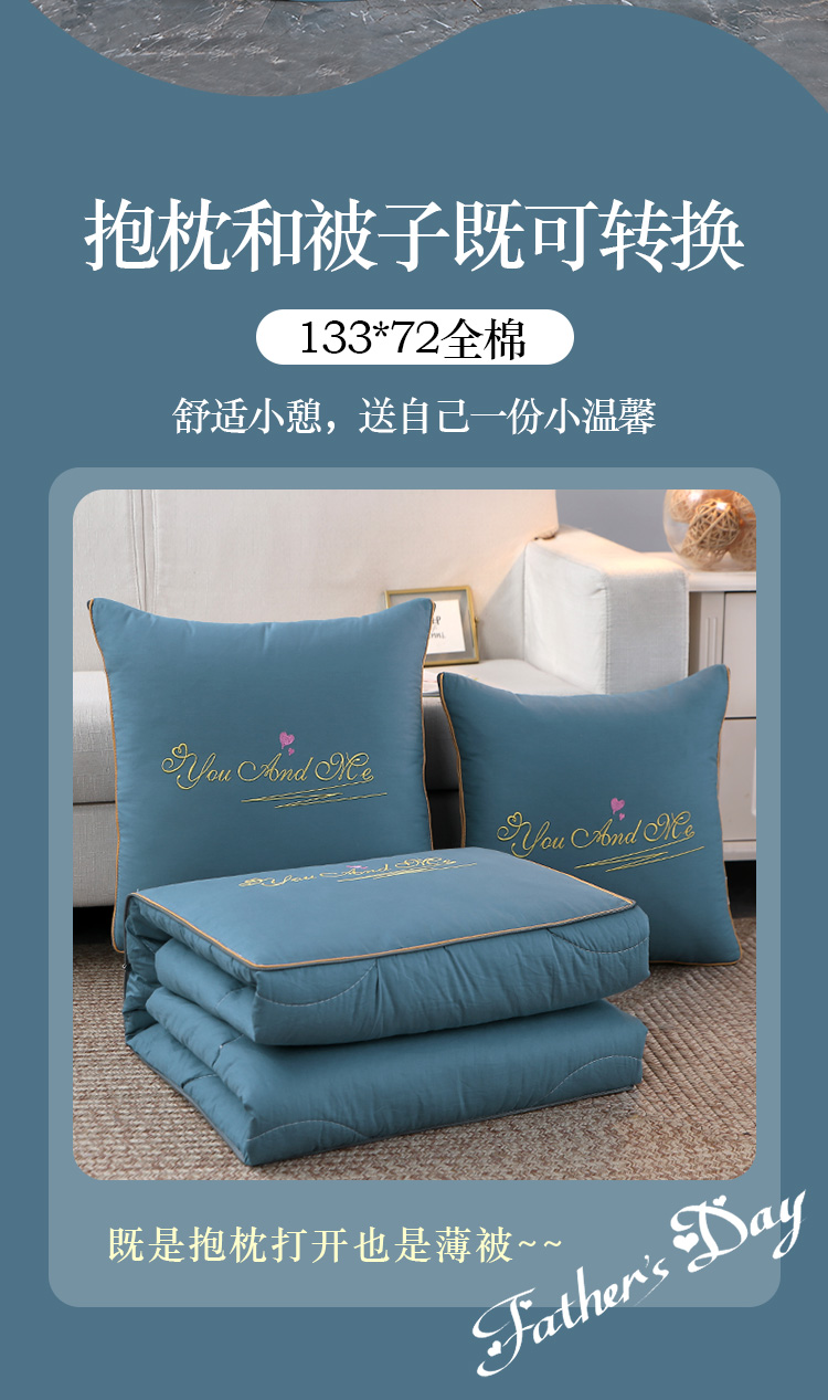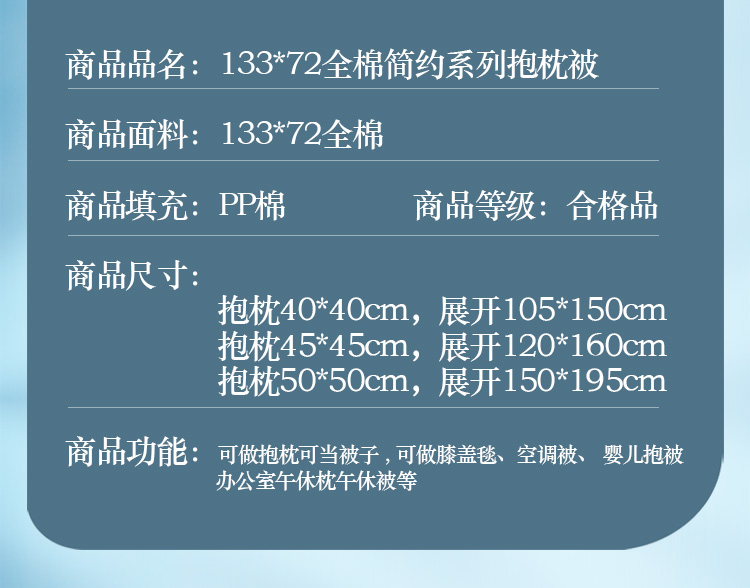 商品名称:照世 2023新款 全棉简约系列抱枕被 蓝色