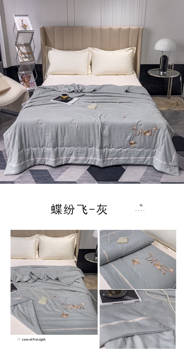 商品名称:优姿 2024新款仿棉麻抗菌绣花夏被 蝶纷飞-灰