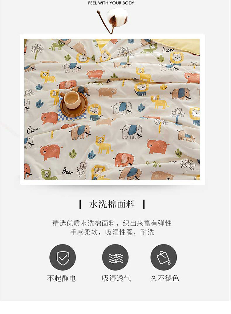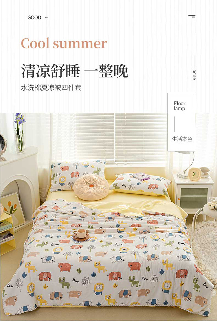 商品名称:羋多 2024新款小清新花边水洗棉夏被夏被四件套动物乐园