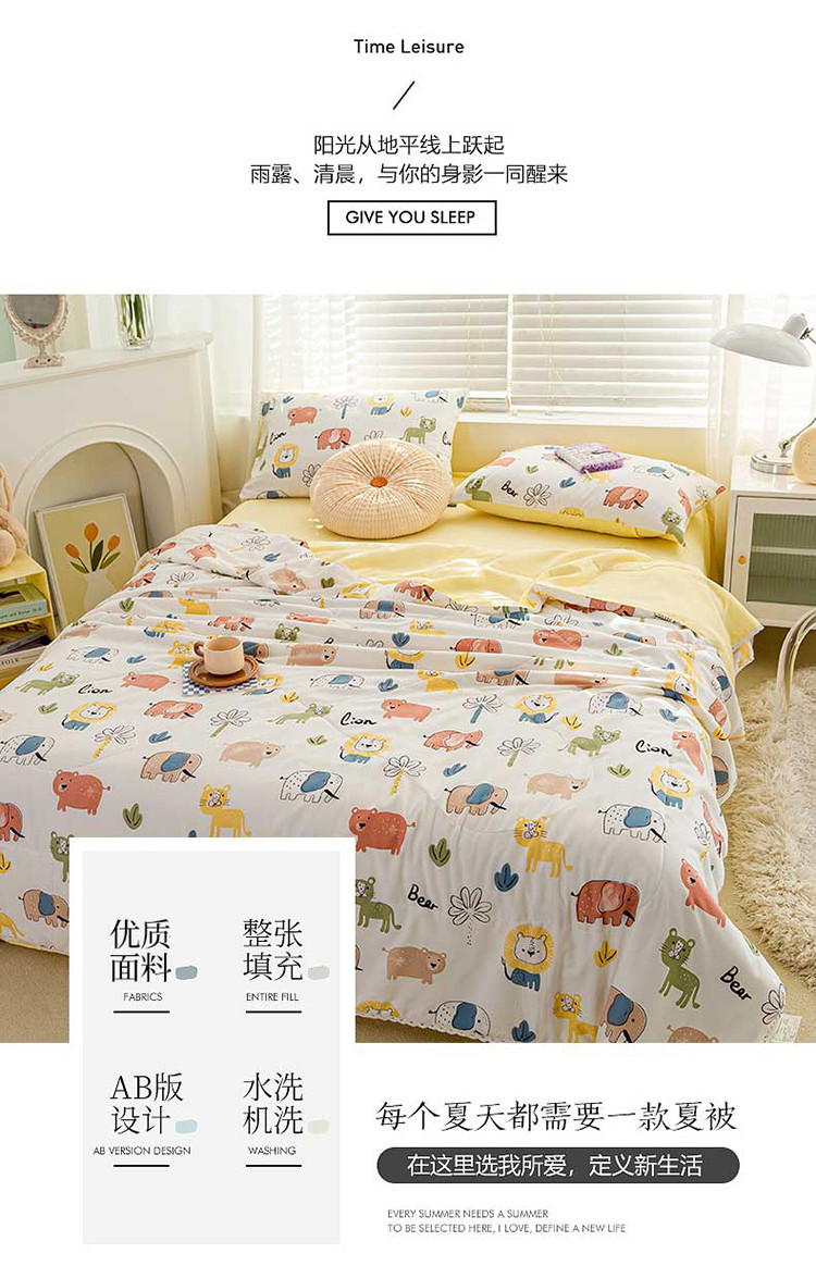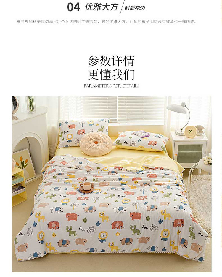 羋多 2024新款小清新花边水洗棉夏被夏被四件套动物乐园