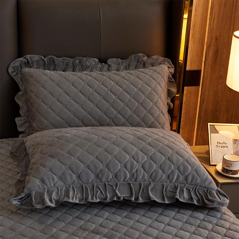 商品名称:晨晨 2023新款水晶绒夹棉花边单枕套 烟灰枕套