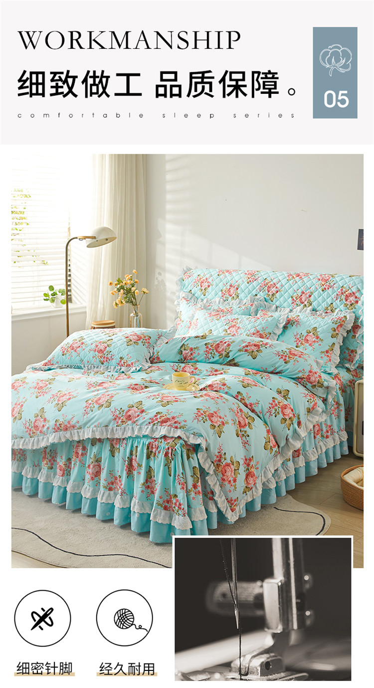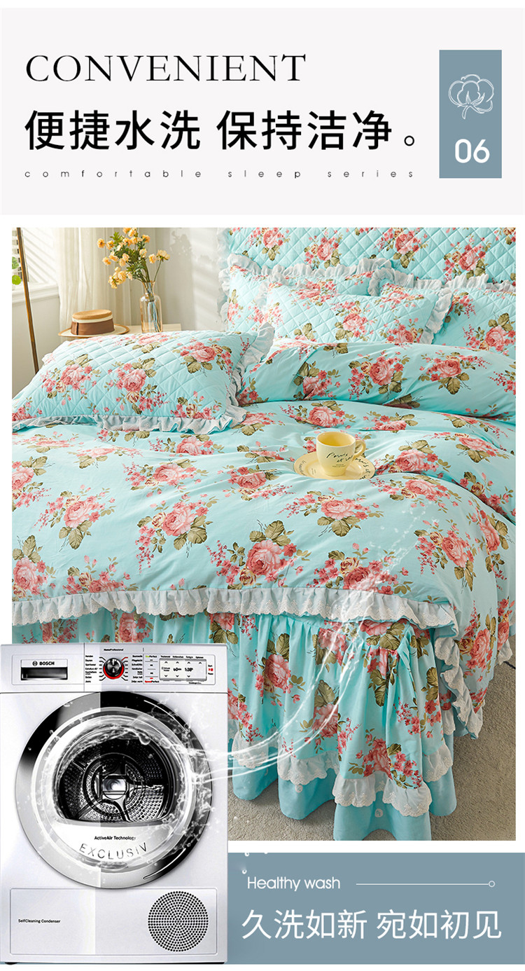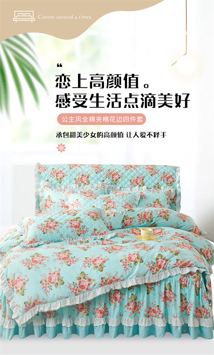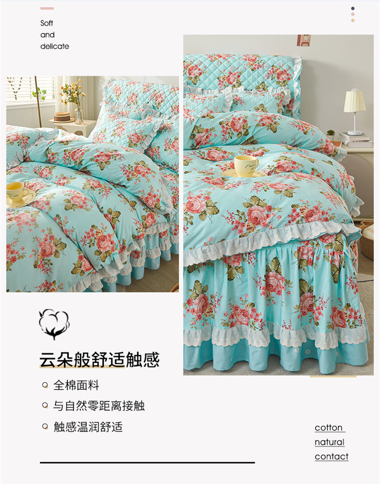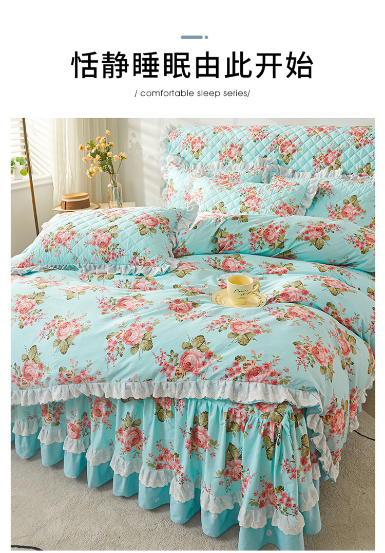 当前位置: 91家纺网 > 商品网购 > 床品套件 > 四件套 > 全棉普通四件套 > 十个点 2024新款全棉印花夹棉韩版蕾丝床裙床头罩四件套 兰若秋思