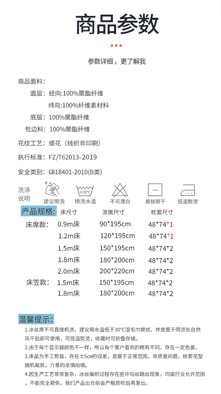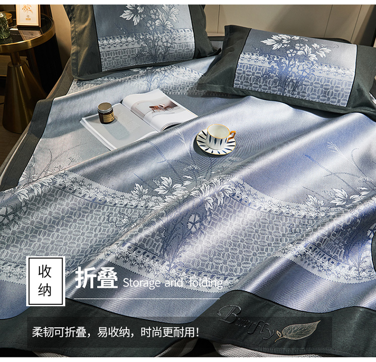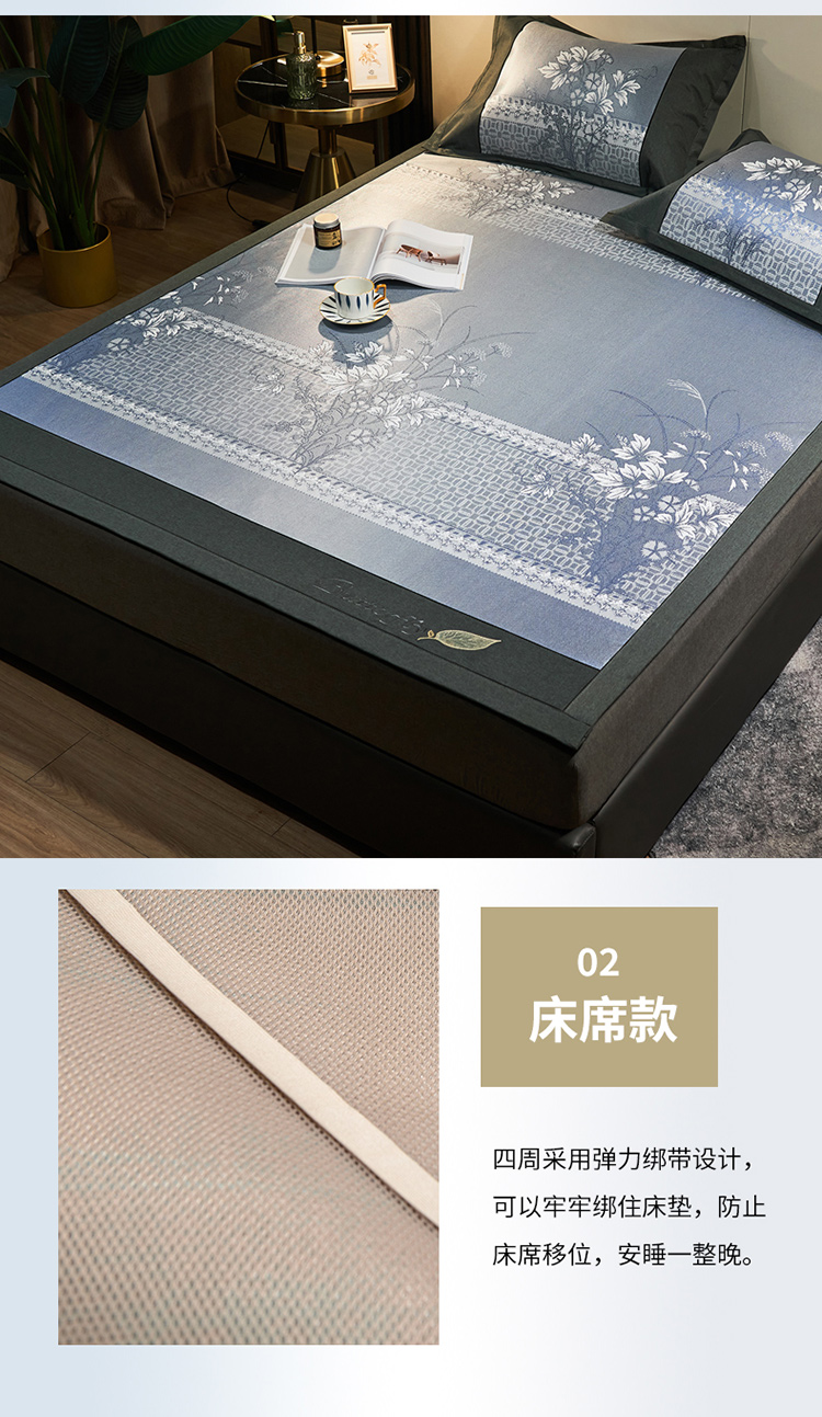 商品名称:全季家居 2023新款600D提花款粗冰丝凉席床席款 花锦簇