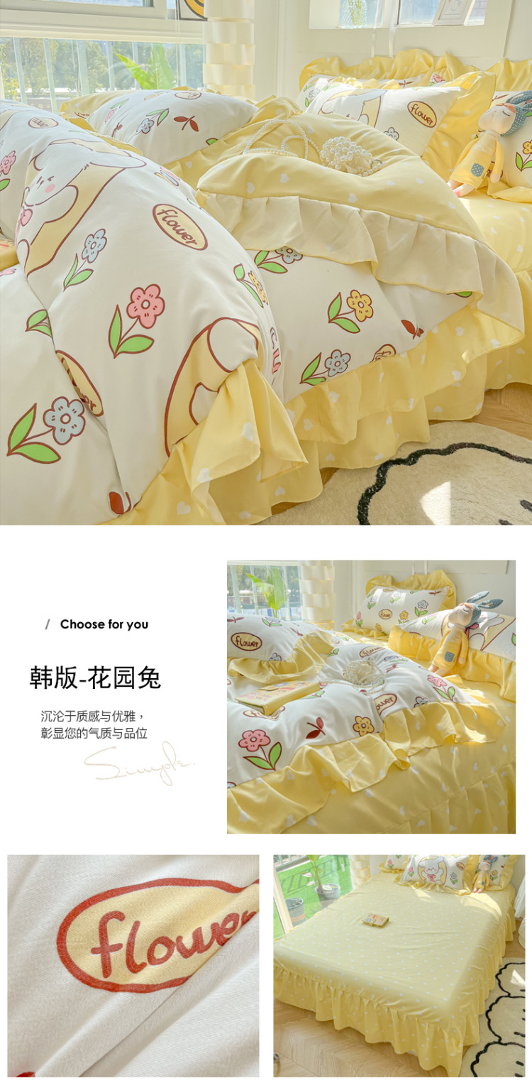 当前位置: 91家纺网 > 商品网购 > 床品套件 > 四件套 > 普通磨毛四件套 > 花伞2024直播热款韩版花边植物羊绒加厚磨毛印花四件套 花园兔