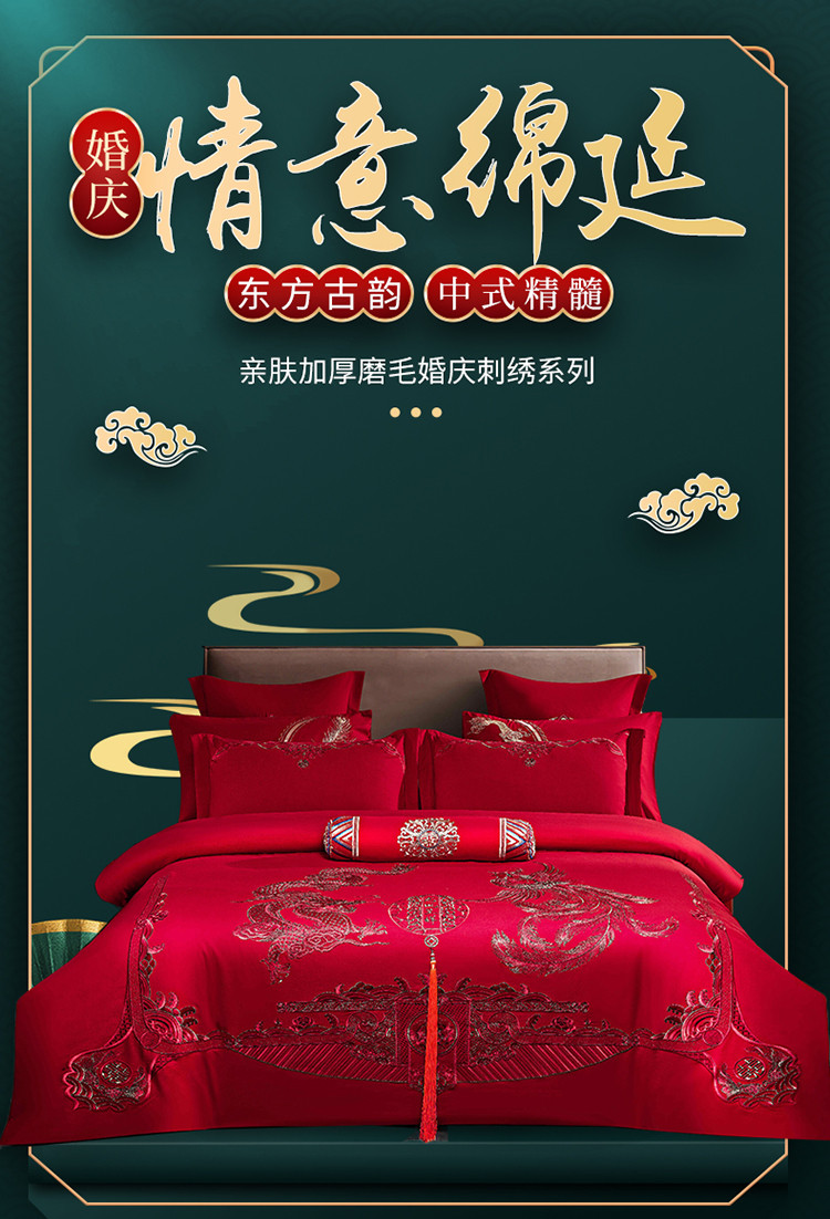 当前位置: 91家纺网 > 商品网购 > 床品套件 > 四件套 > 婚庆四件套 > 2025新款亲肤棉绣花刺绣婚庆四件套 情意绵延-红