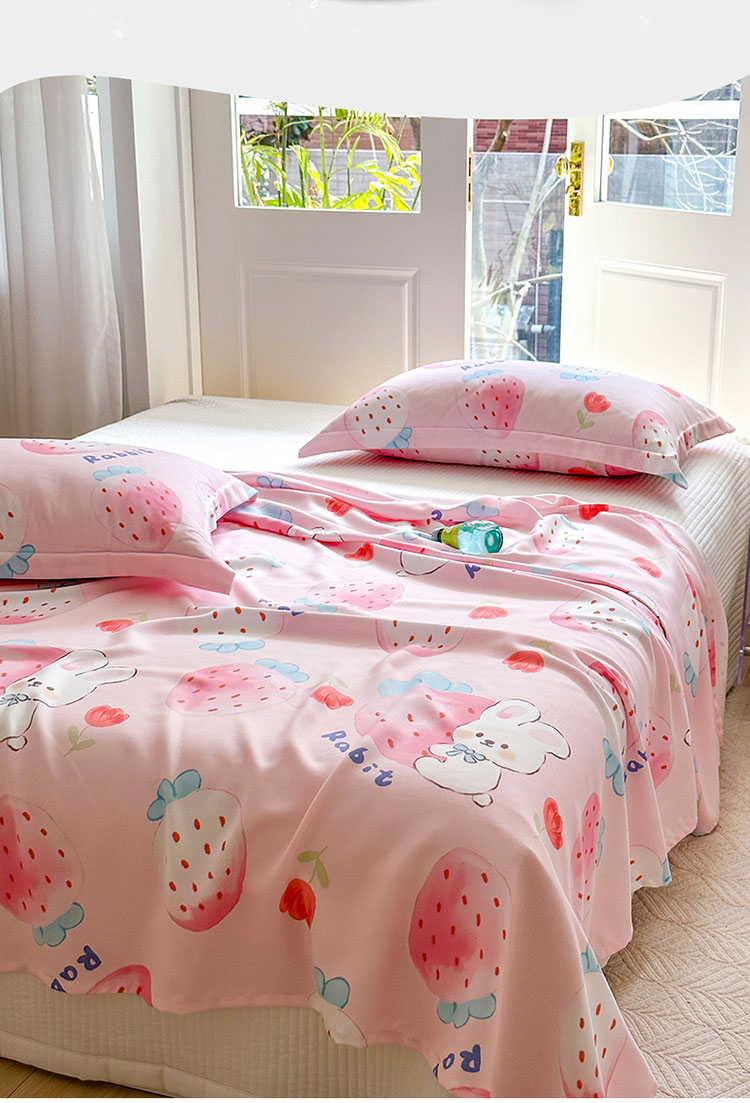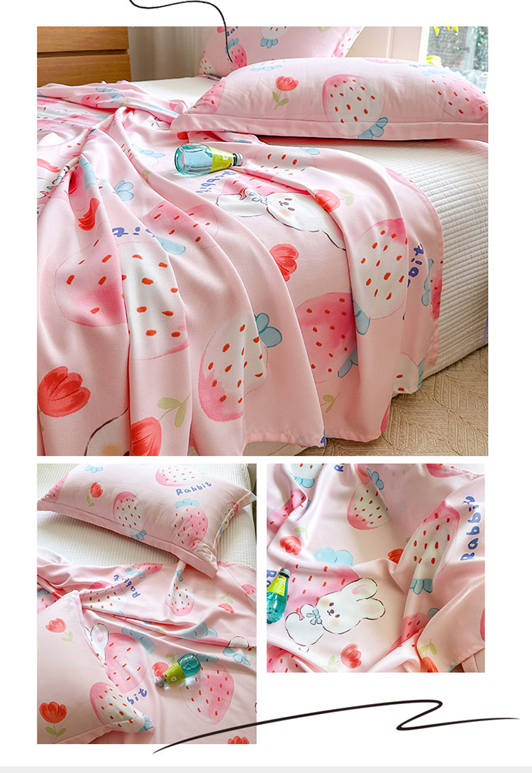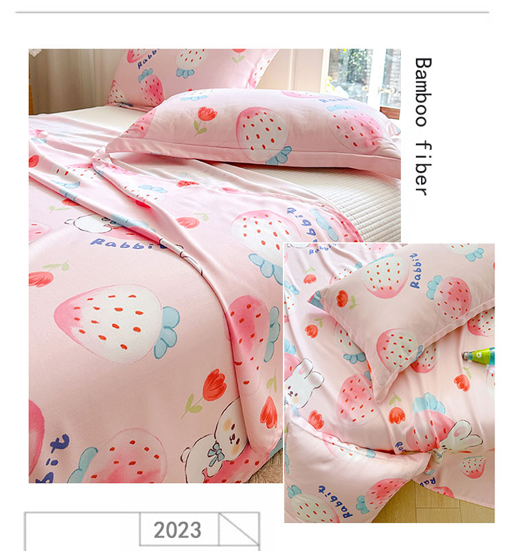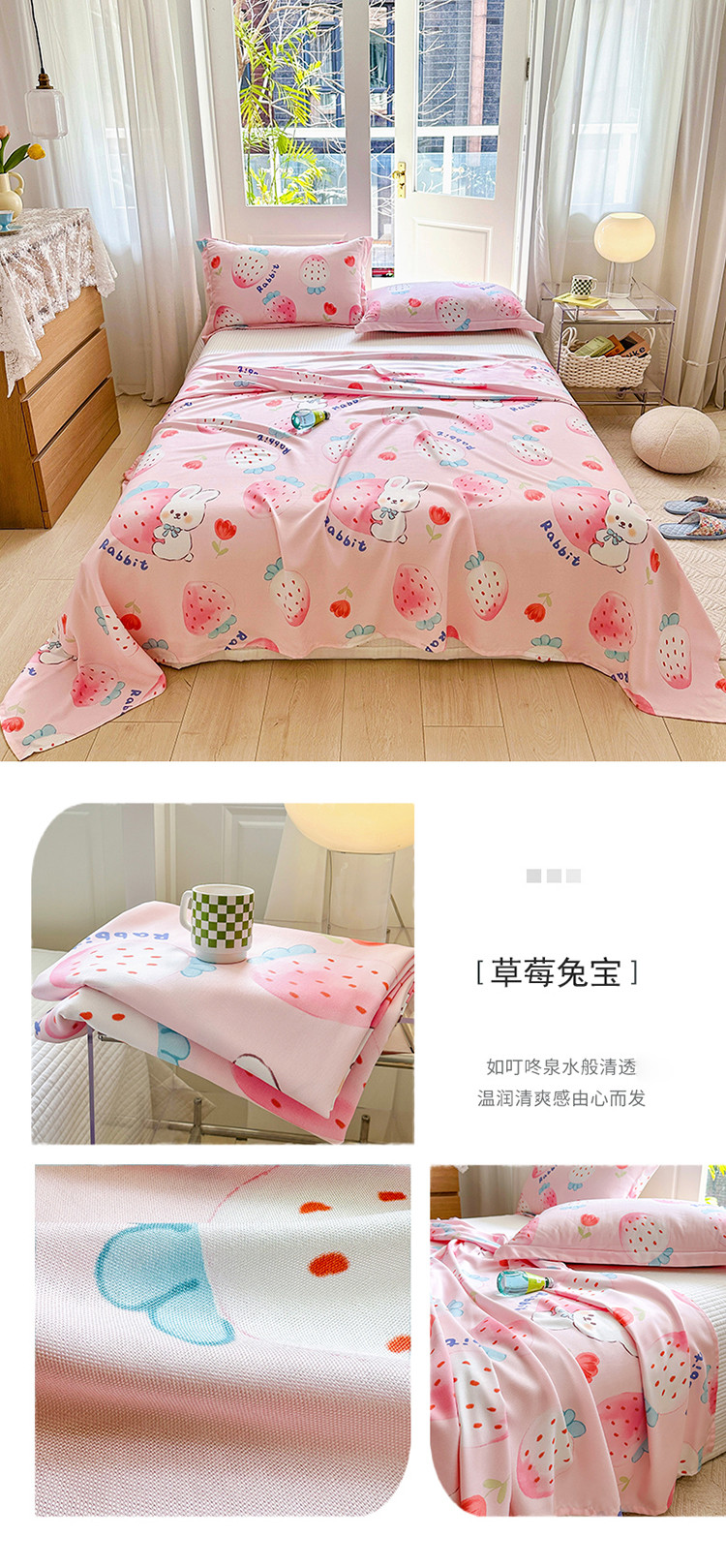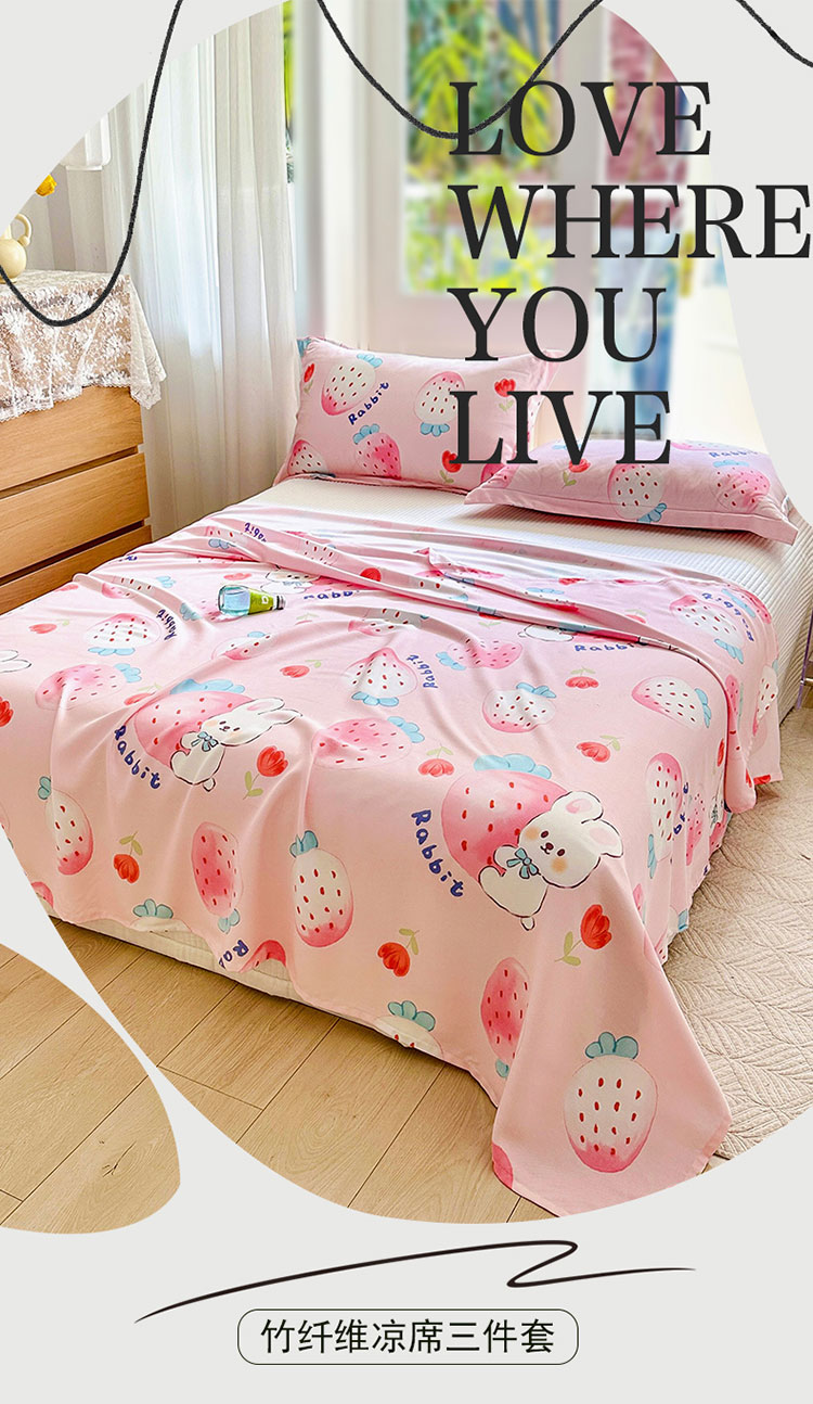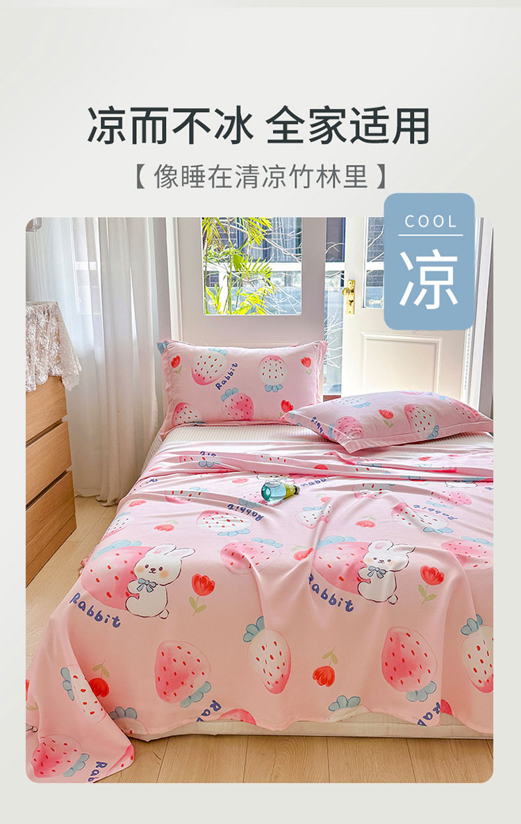 商品名称:麻依 2023新款竹纤维凉席三件套床单 草莓兔宝