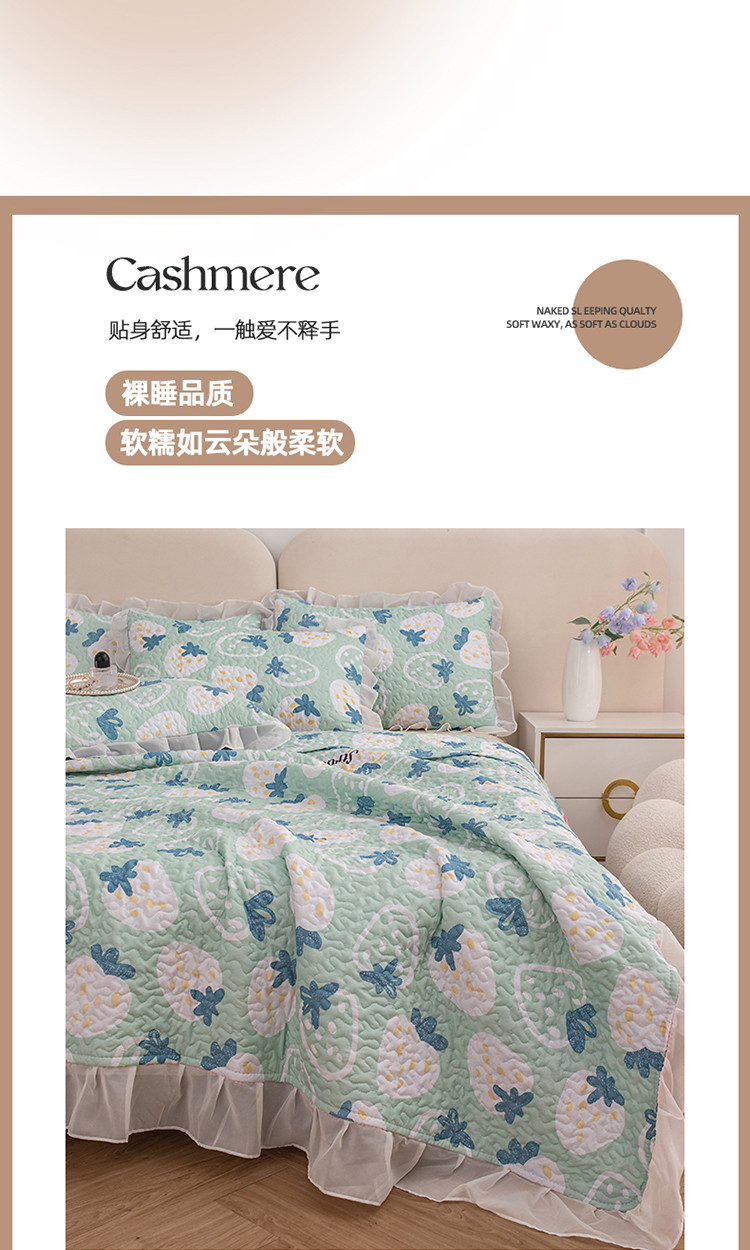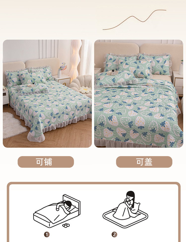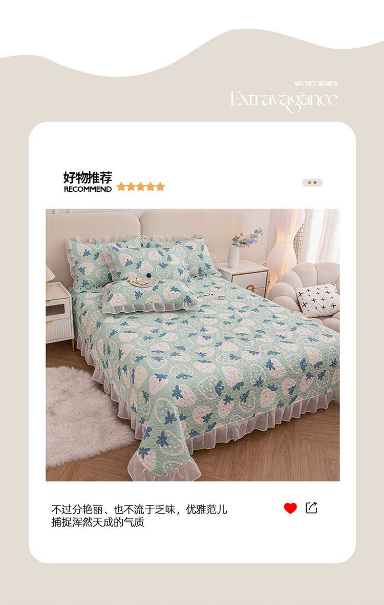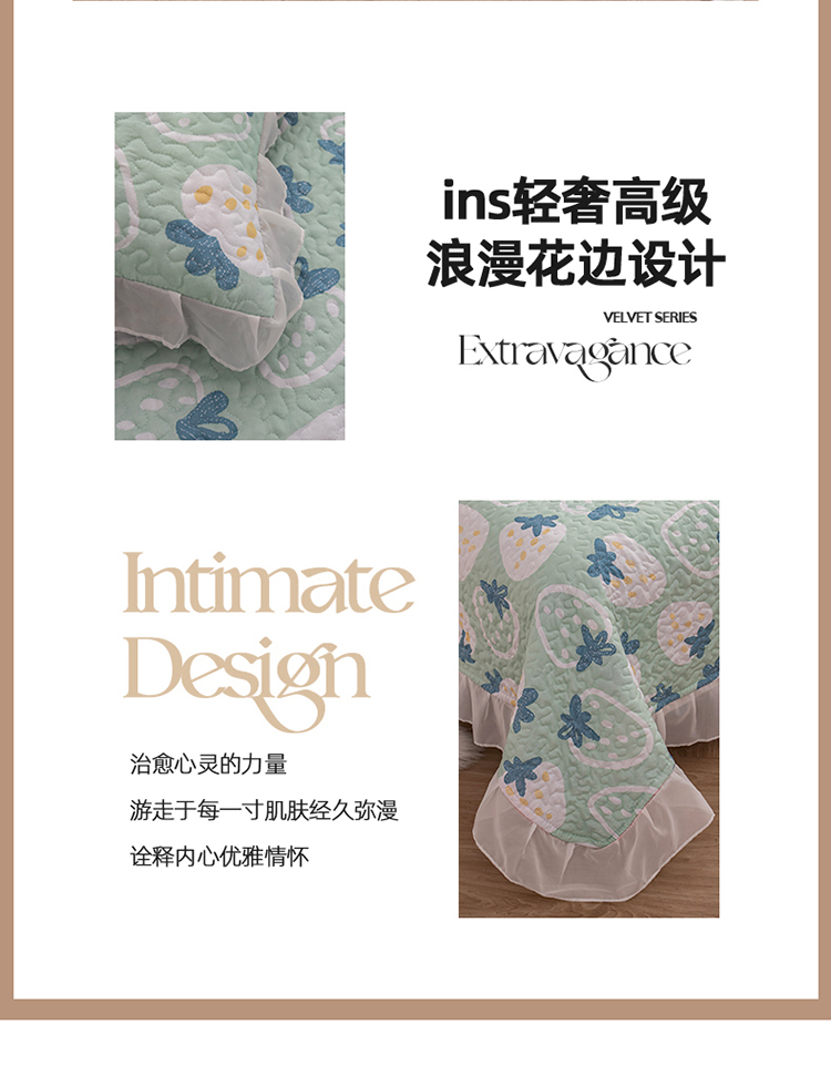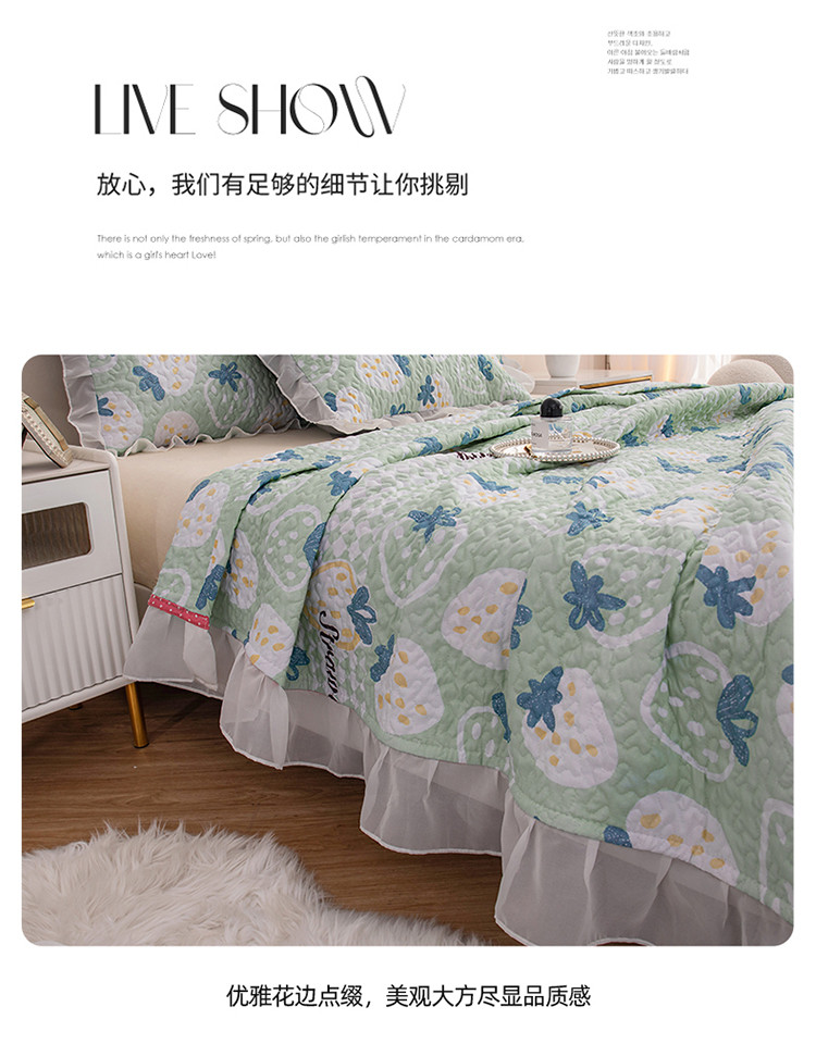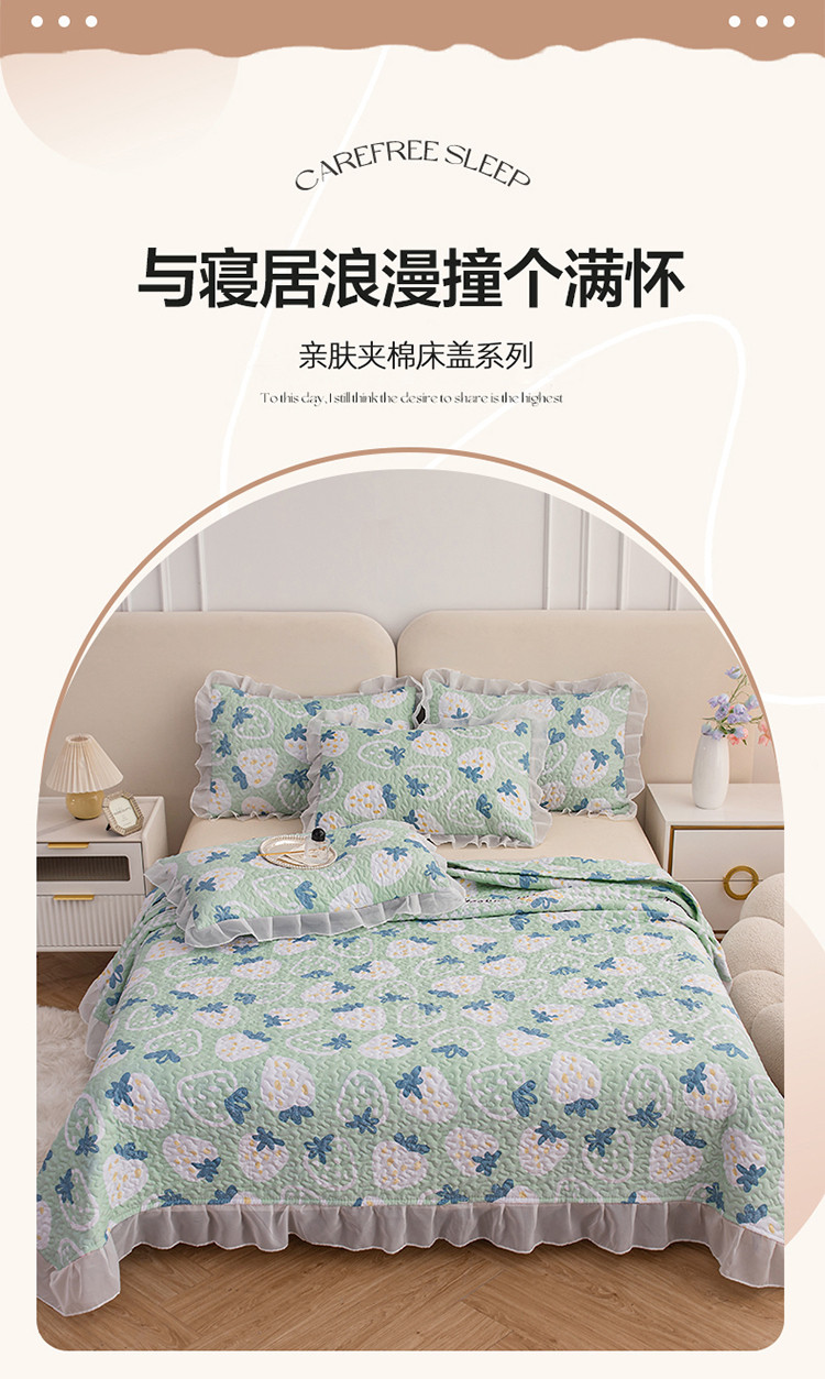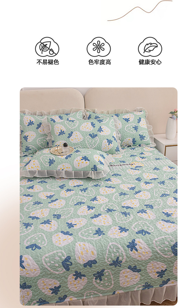 商品名称:梓依 2023新款 亲肤夹棉床盖系列 草莓-绿