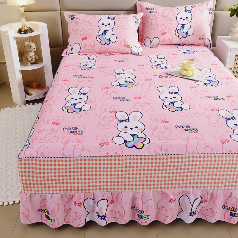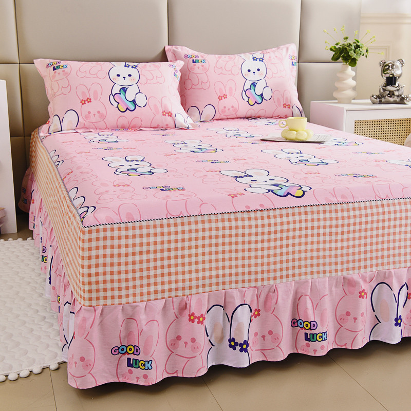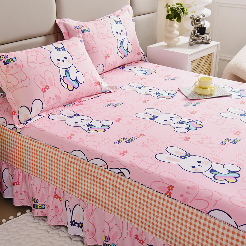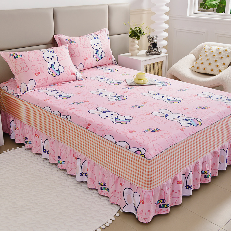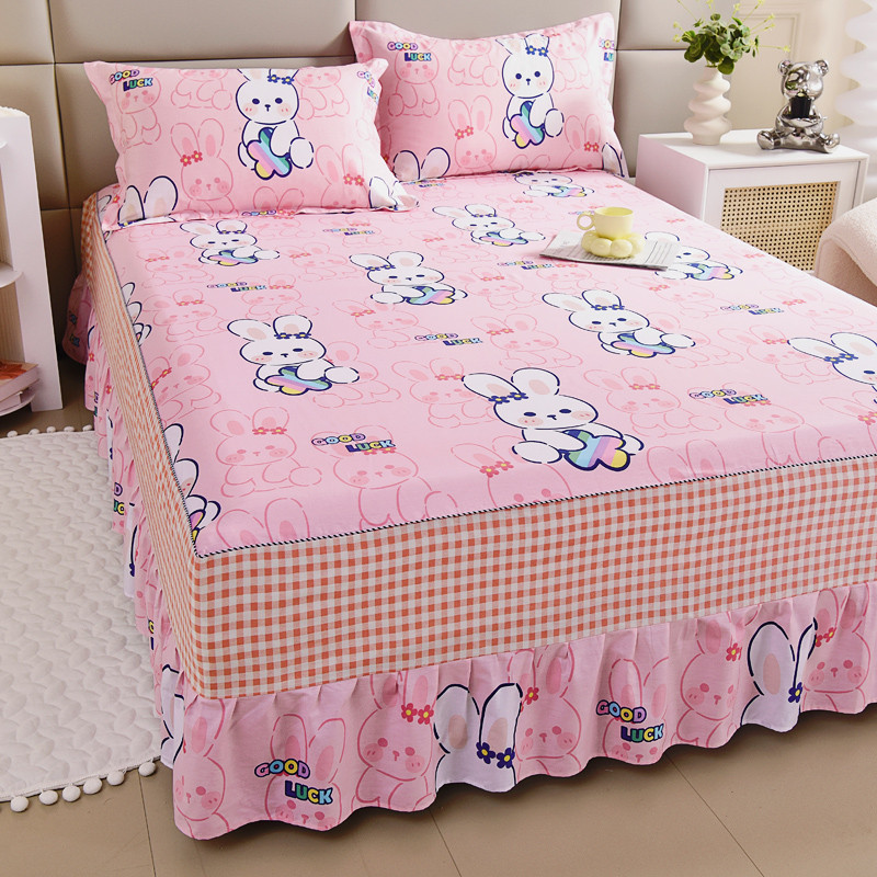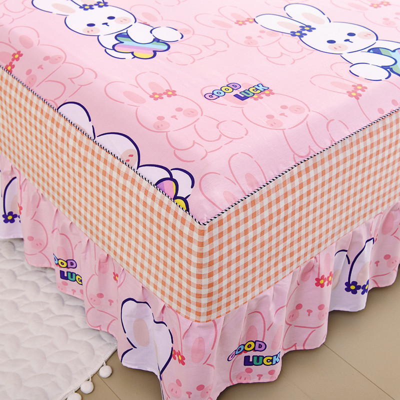 当前位置: 91家纺网 > 商品网购 > 床品套件 > 四件套 > 全棉普通四件套 > 名优 2023新款13070田园风床裙四套件 恋爱小兔