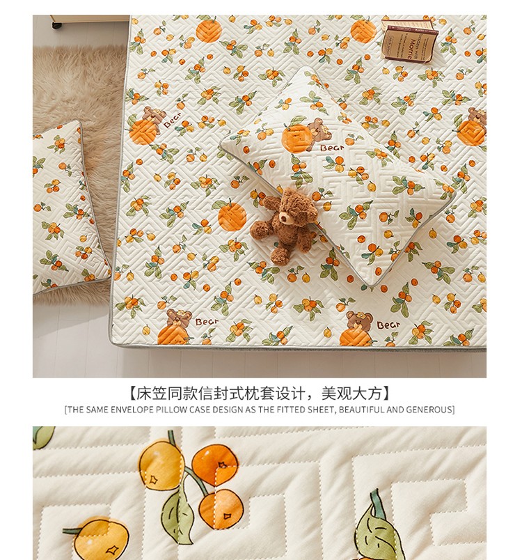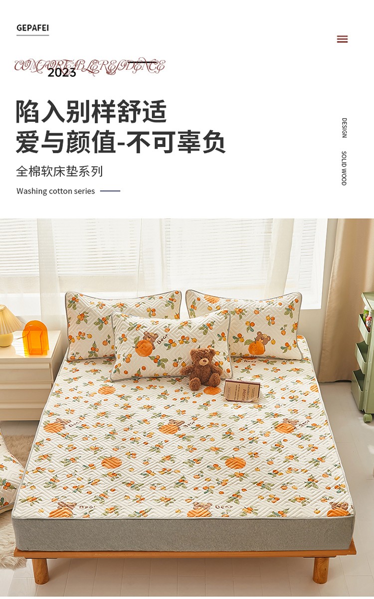 • 91家纺网 家纺一手货源 找家纺 舒居 2024新款全棉床垫床护垫橘子卡熊