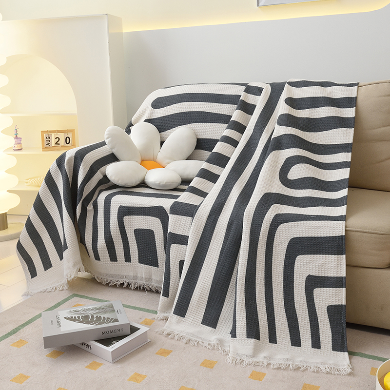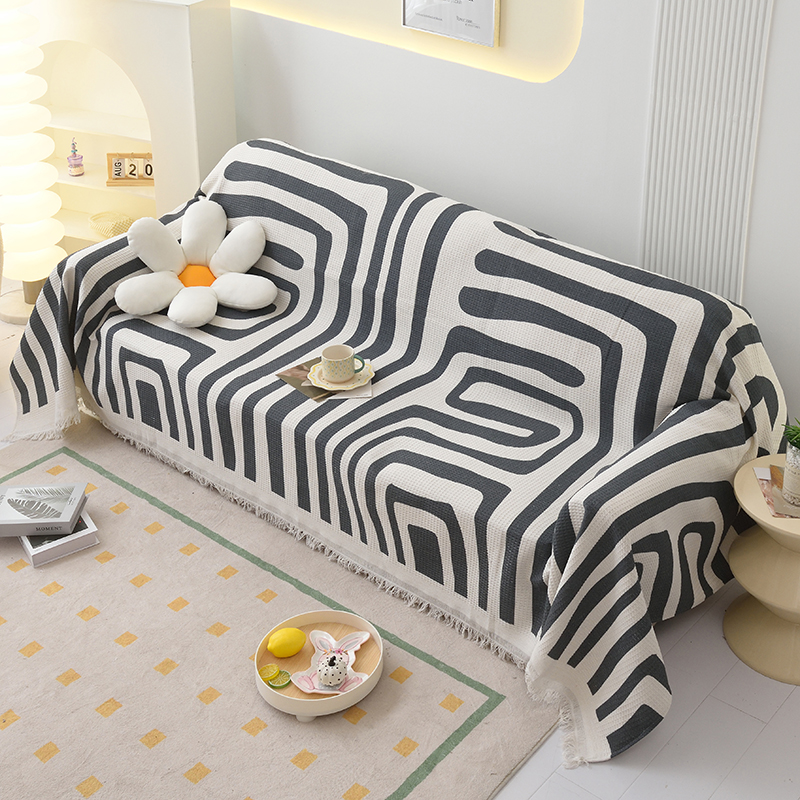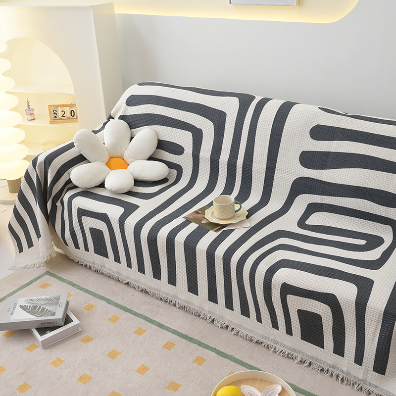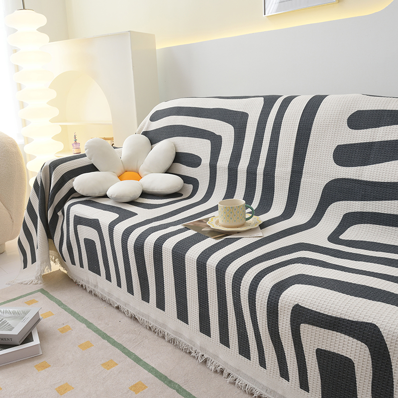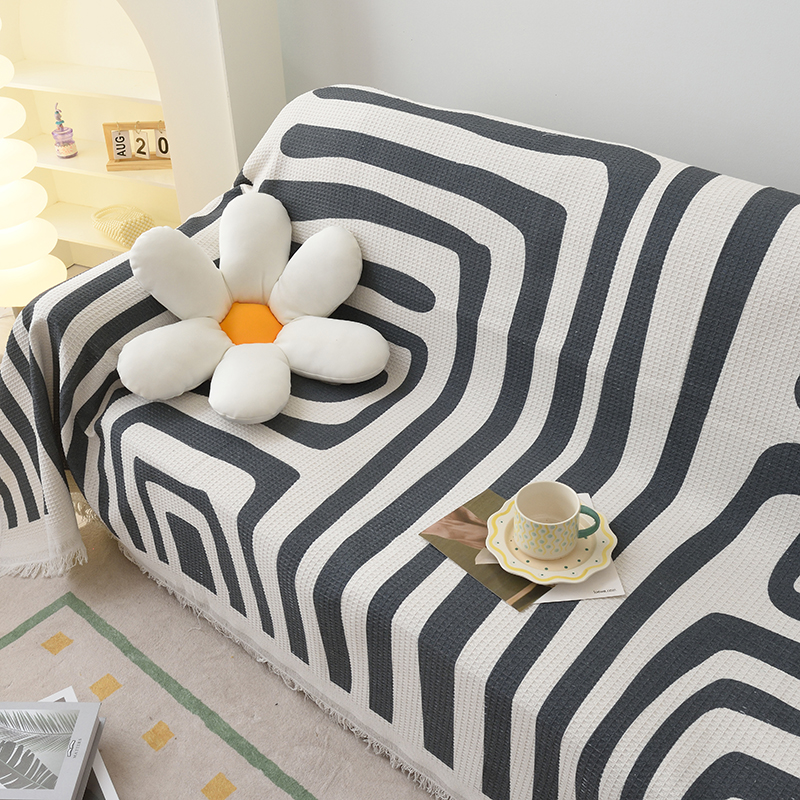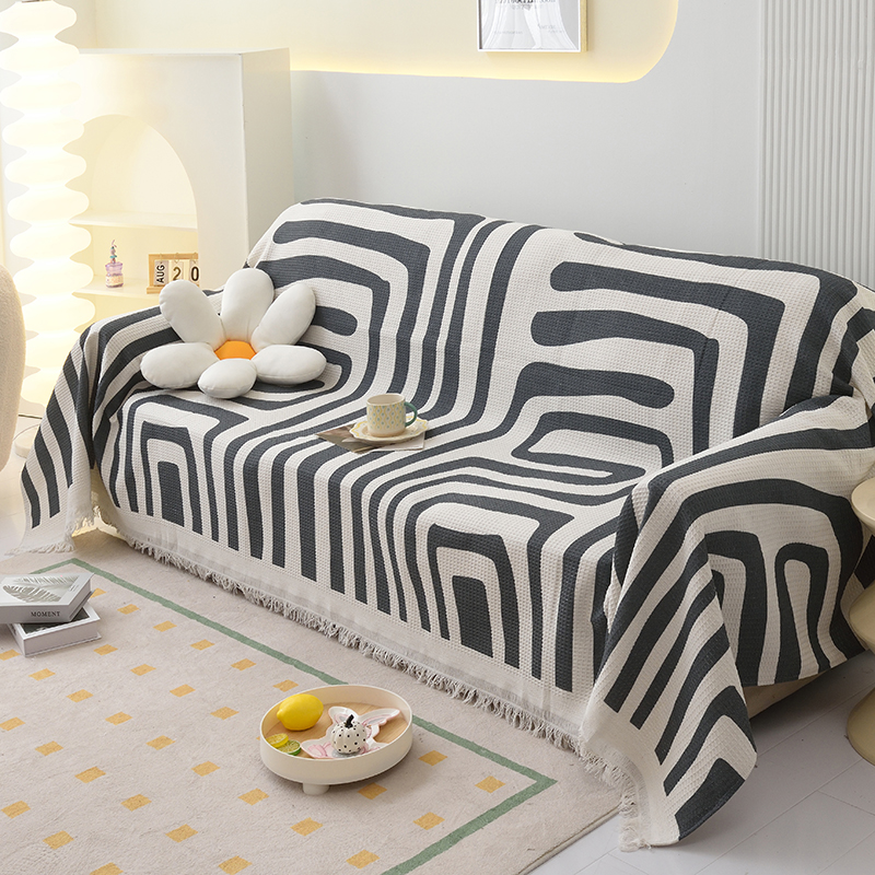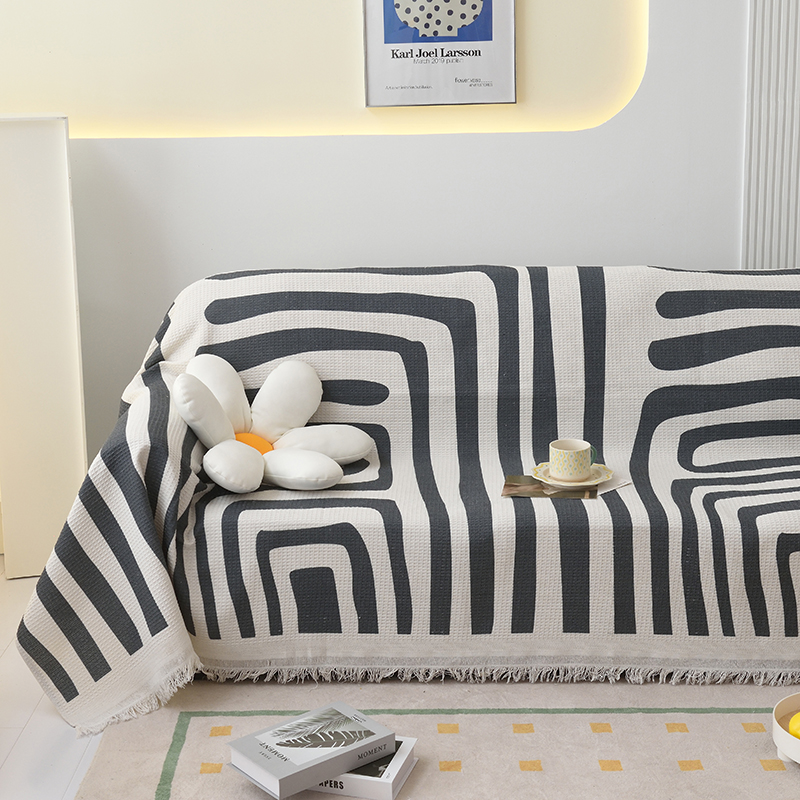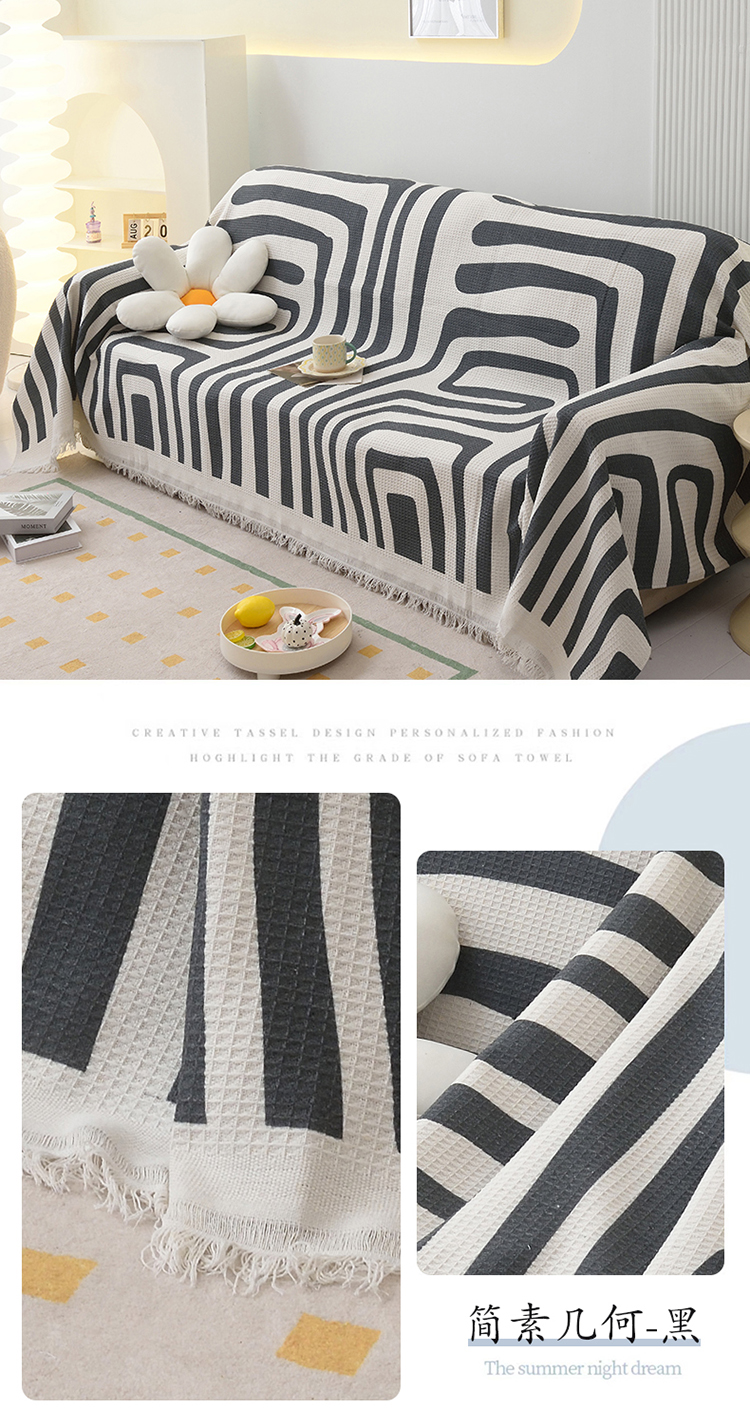 当前位置: 91家纺网 > 商品网购 > 居家布艺 > 坐垫/椅垫/沙发垫 > 沙发垫 > 启博家纺 2023爆款针织棉线沙发巾 简素几何-黑