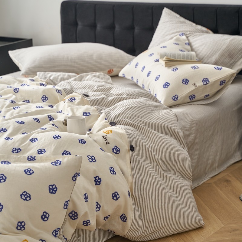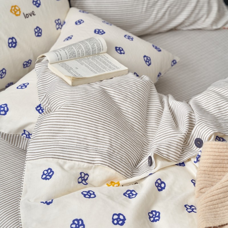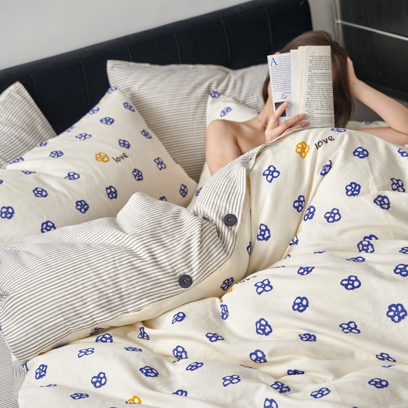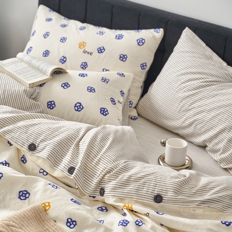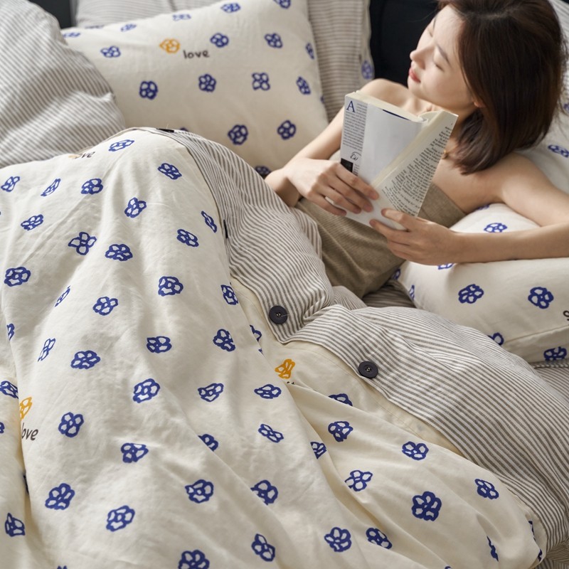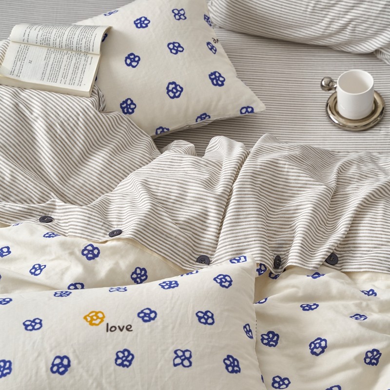 商品名称:时年 2023新款全棉母婴级有氧双层纱纽扣工艺款四件套-场景一 休闲时代-兰